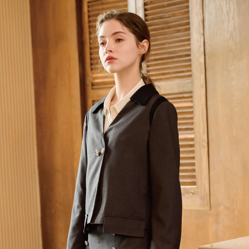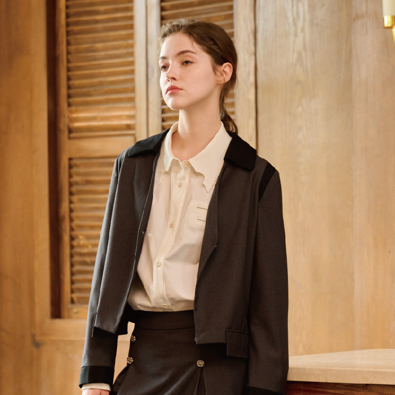 PATAVINITY撞色拼接短款西装女秋季通勤翻领短款气质西服上衣外套