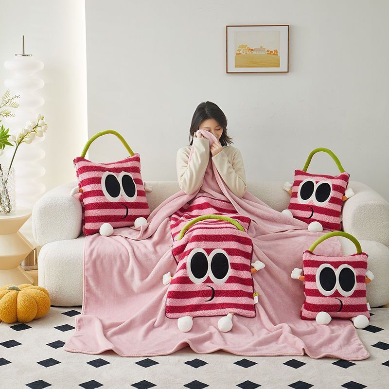 网红多巴胺手拎抱枕被子两用汽车靠垫二合一办公室午睡毯子空调被