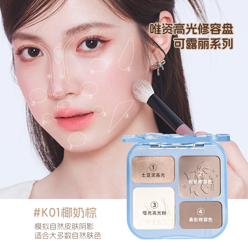 VEECCI/唯资可露丽系列四色高光修容盘面部修颜不褪色持久彩妆