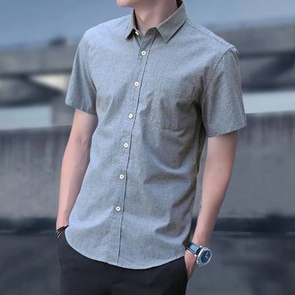 衬衫男短袖夏季纯色休闲免烫流行商务青年纽扣薄款百搭青少年时尚