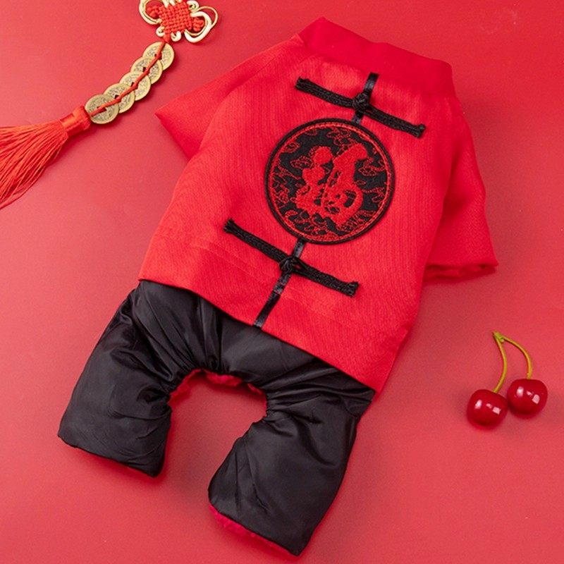 狗狗衣服新年唐装喜庆过年泰迪比熊博美小型犬宠物猫咪冬装四脚衣