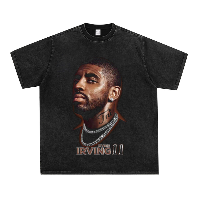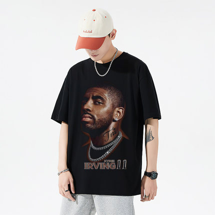 Kyrie Irving凯里欧文美式小领口重磅纯棉圆领潮数码印花T恤短袖
