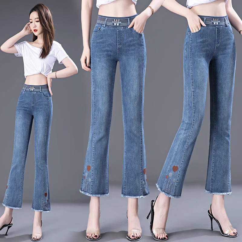 高腰微喇九分牛仔裤女士秋季2025年新款显瘦修身直筒裤子喇叭裤子