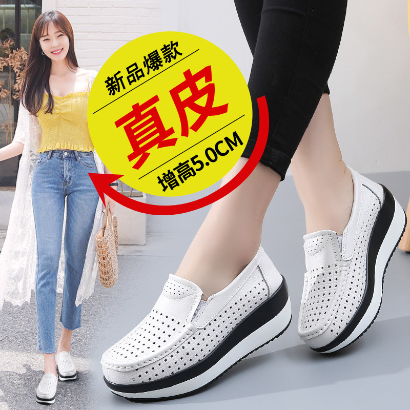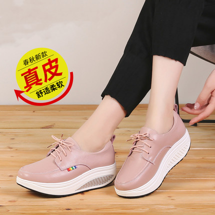 摇摇鞋女真皮厚底松糕鞋2020春季新品单鞋百搭增高舒适软底女鞋子