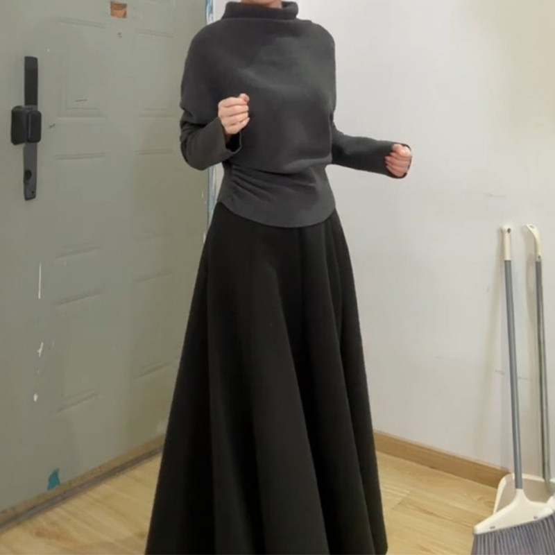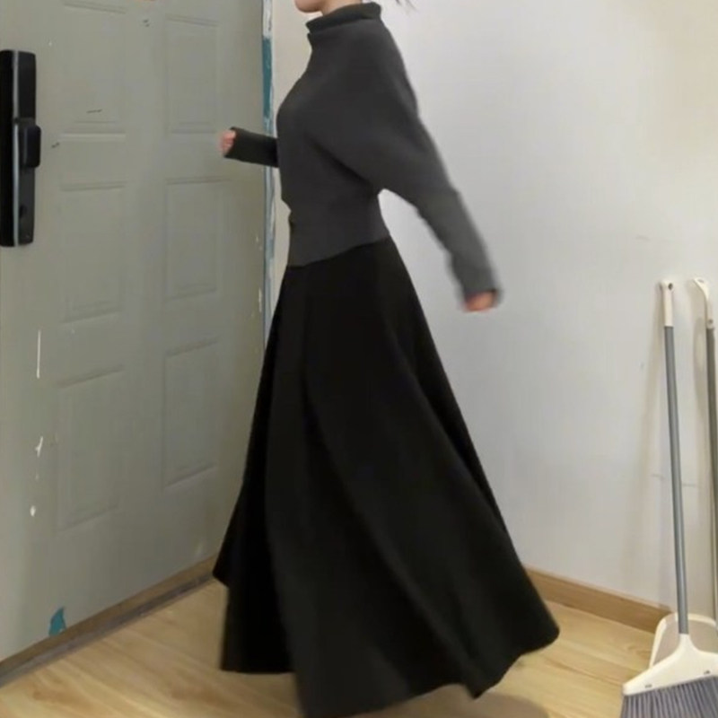 黑色大方得体半身裙女高级感大码梨型身材伯克利春季a字遮胯长裙