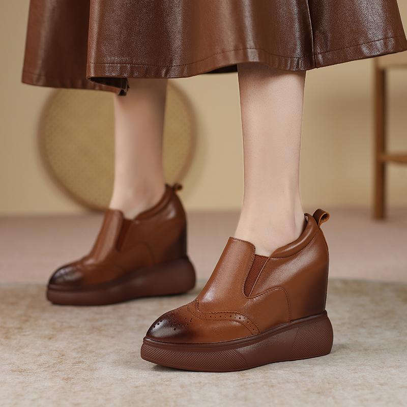 2025春季新款内增高显瘦单鞋英伦风时尚百搭尖头厚底一脚蹬休闲鞋