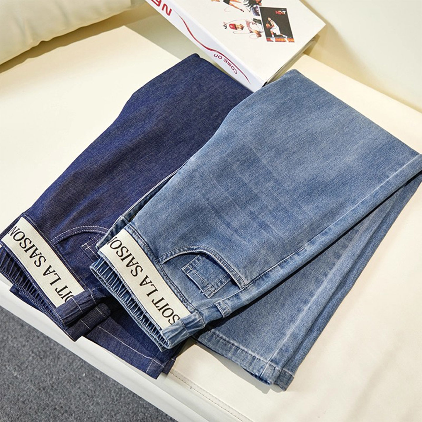 小个子八分九分窄版阔腿牛仔裤女