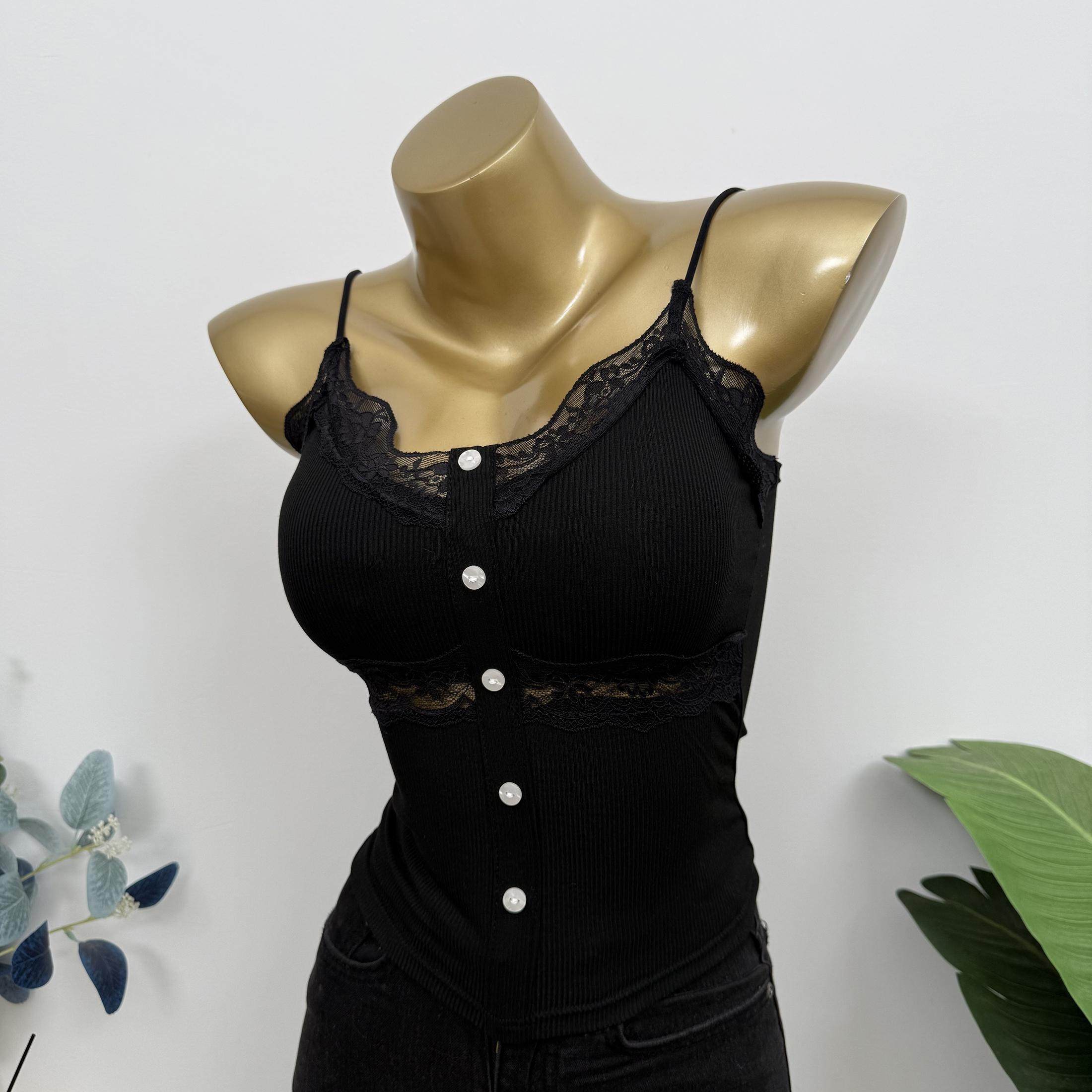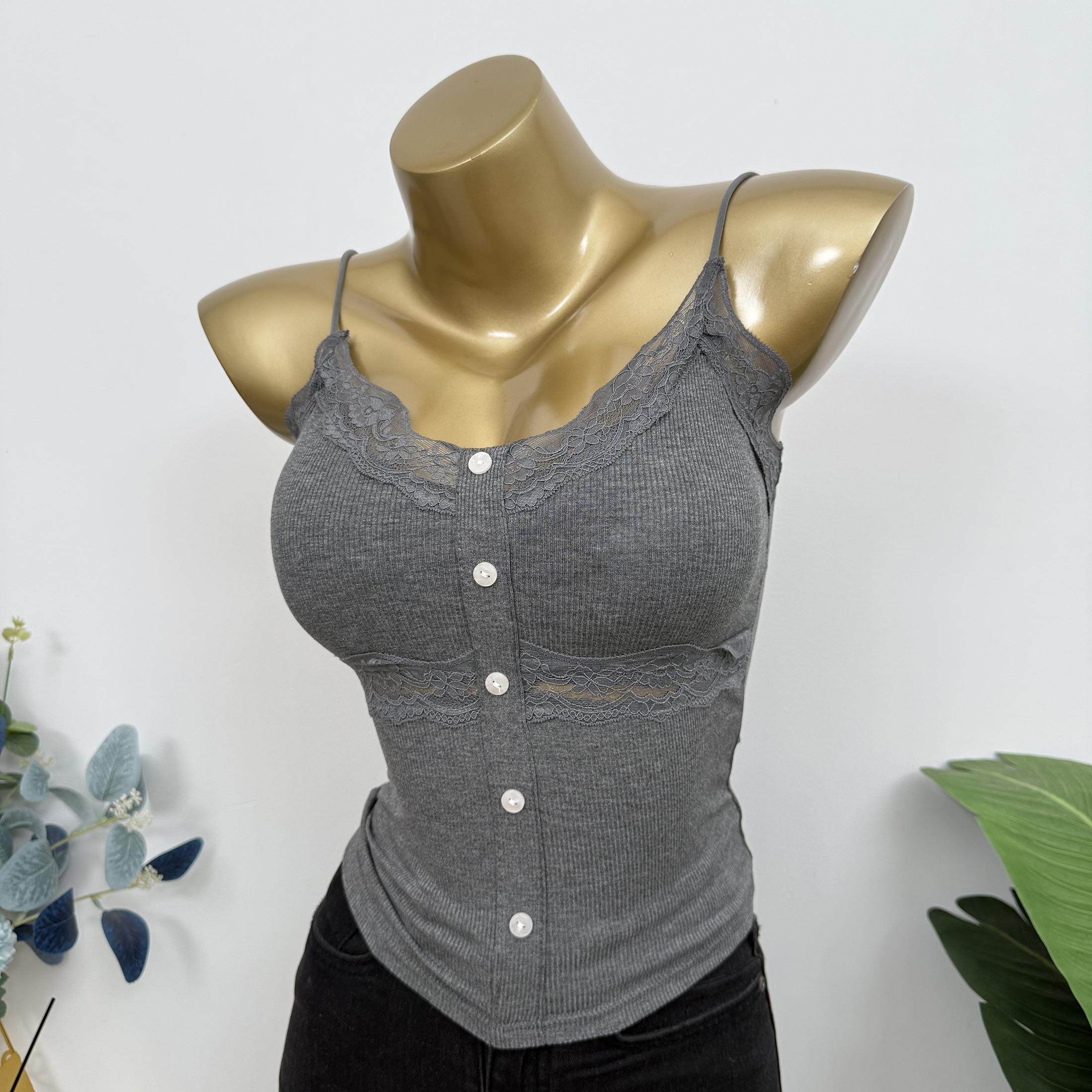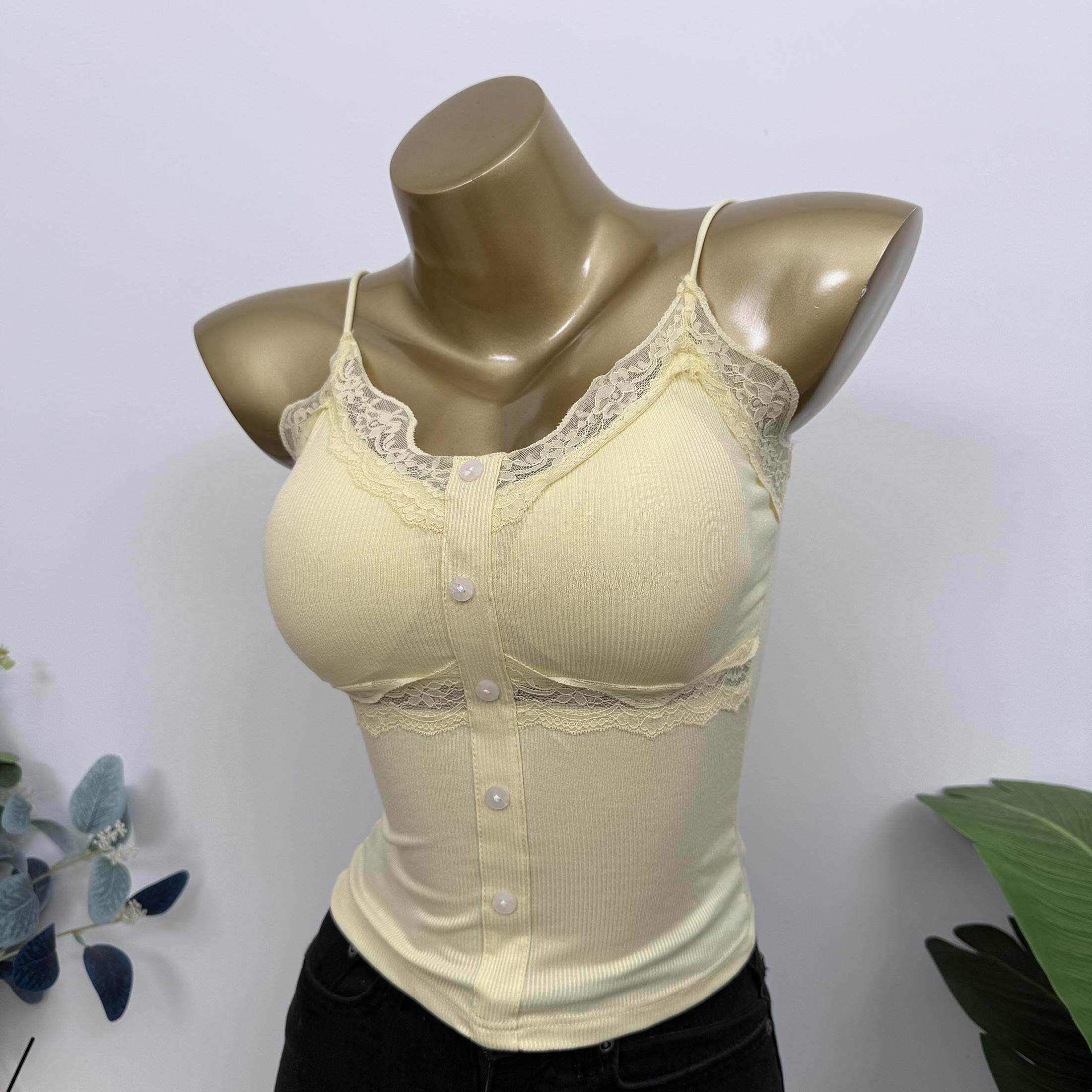 靓!白菜价~带胸垫纯欲性感V领吊带背心女2025夏蕾丝拼接打底上衣