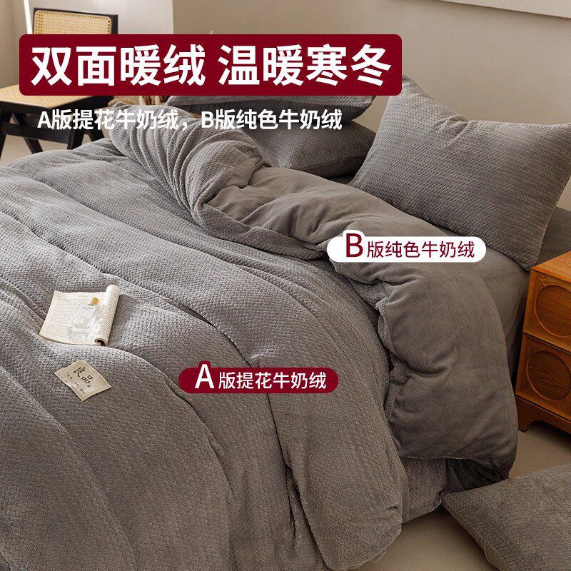 南极人轻奢冬季四件套牛奶绒加厚珊瑚绒被套罩床单2024新款床品