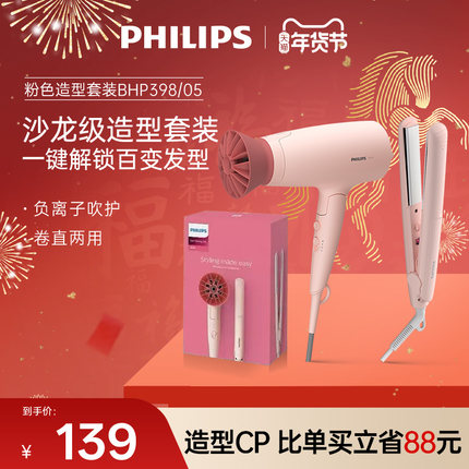 飞利浦小花筒电吹风机直板夹套装风筒家用大风力速干负离子护发