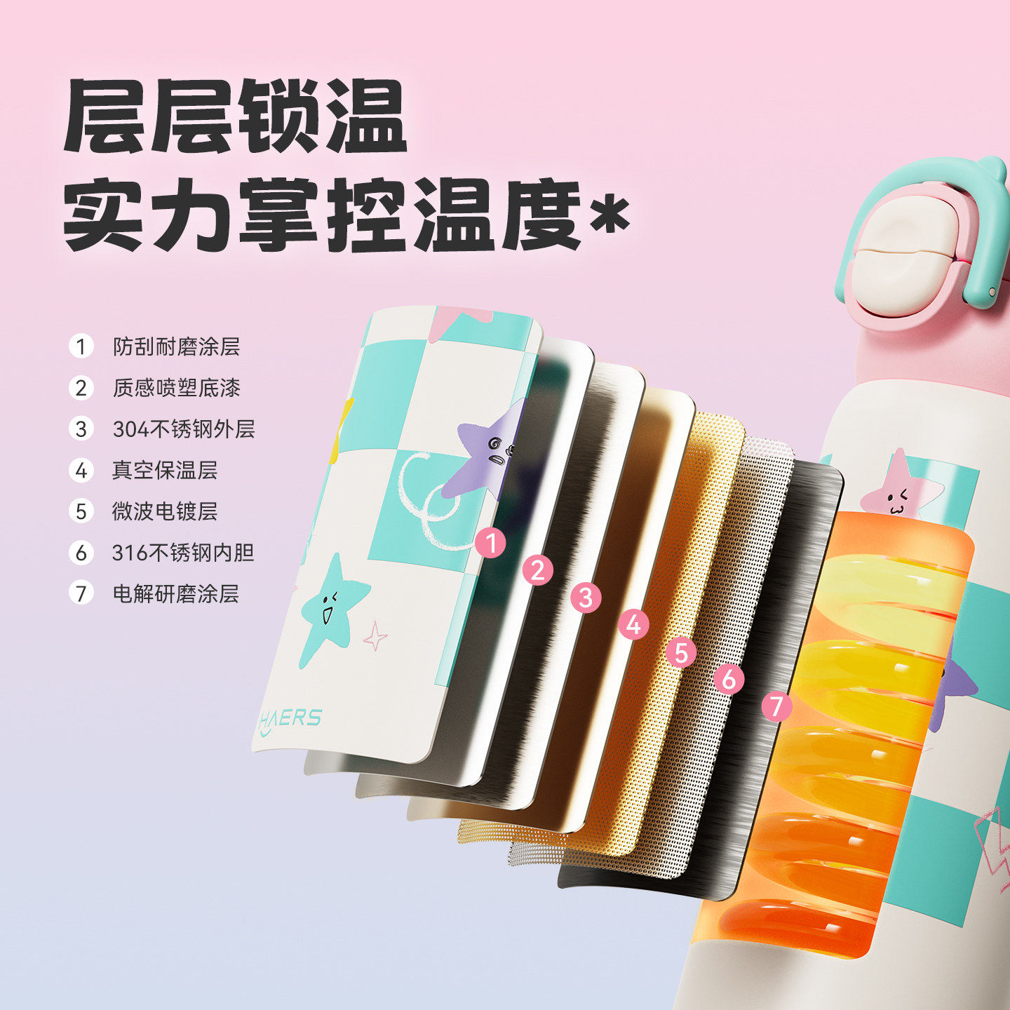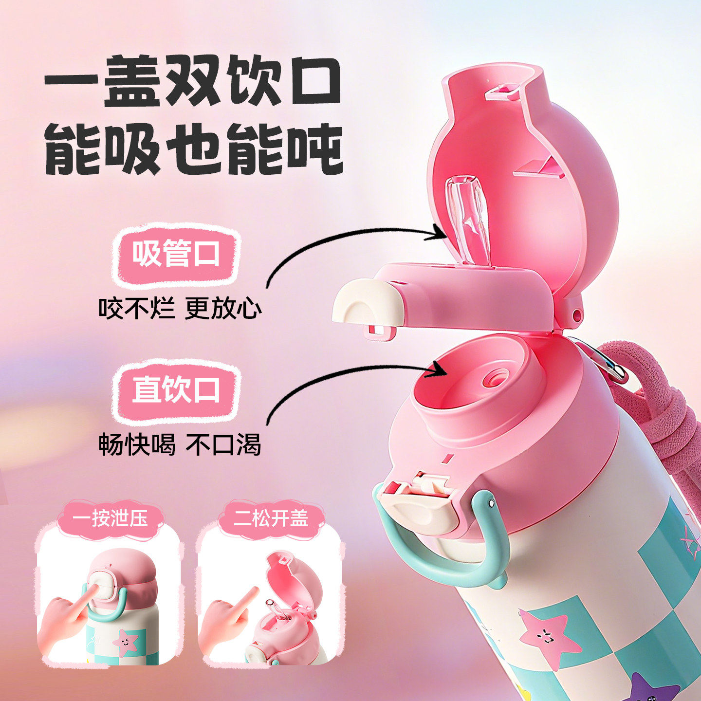 哈尔斯保温杯新款一盖双饮水杯男女学生上学专用水壶儿童吸管杯子