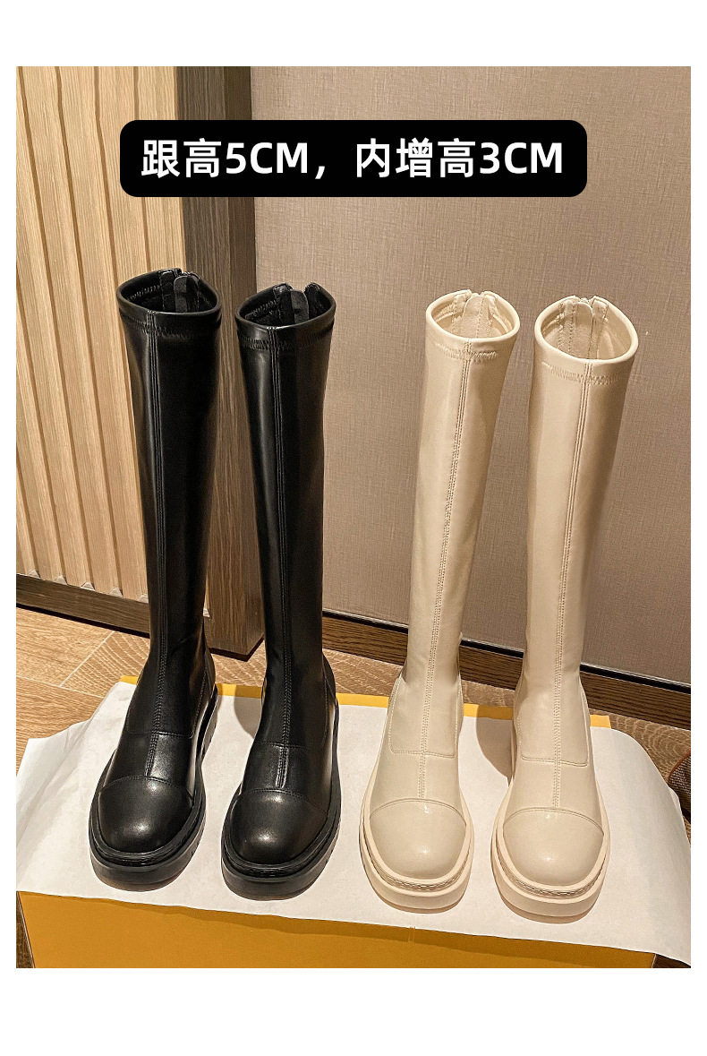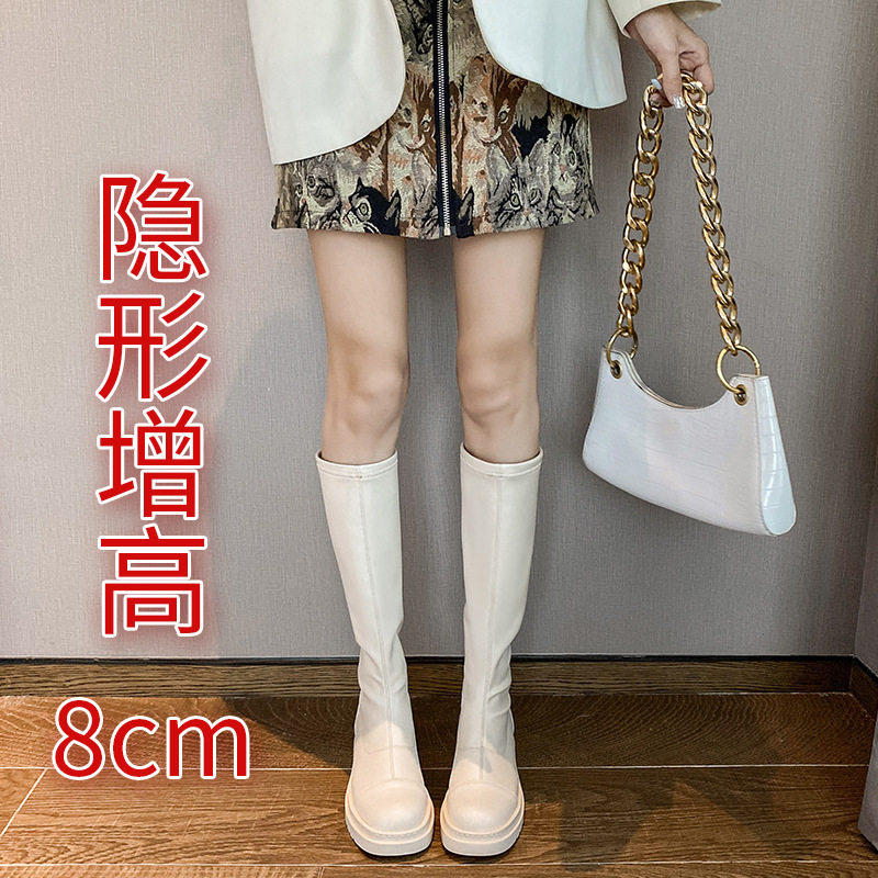 小个子长筒靴 内增高女鞋8cm增高瘦腿白色长筒靴小码厚底
