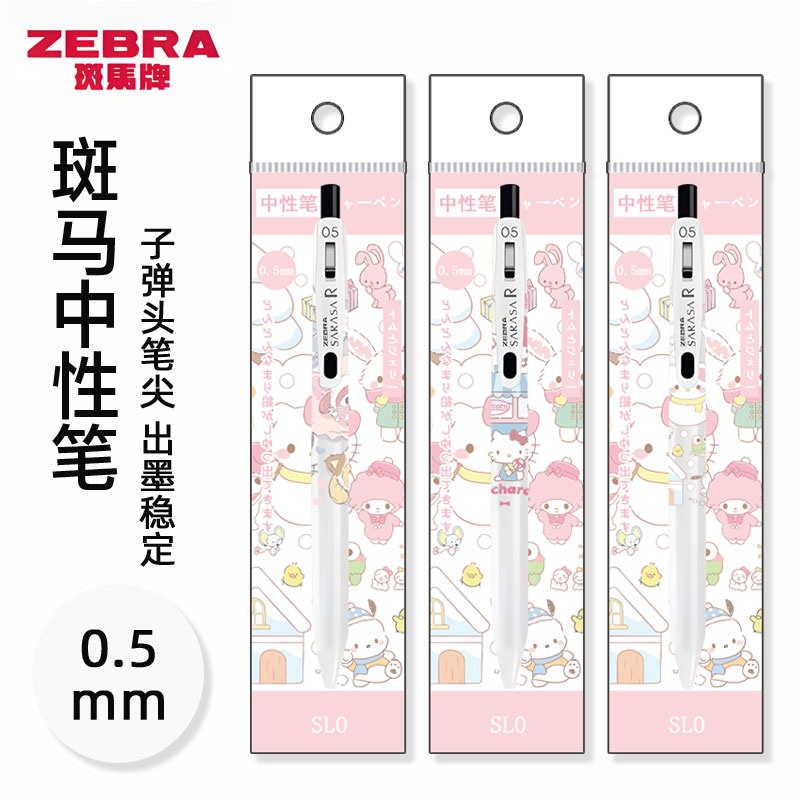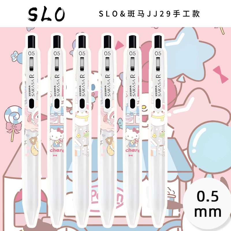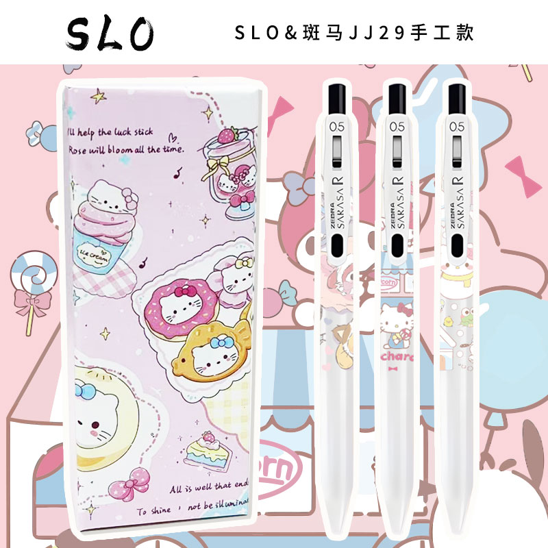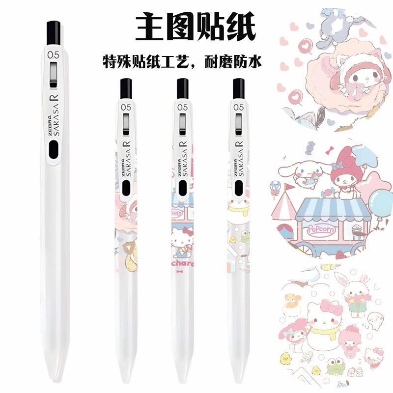 日本ZEBRA斑马JJ29三丽鸥限定文具套装送礼DIY按动签字日系考试笔学生用刷题黑笔碳素笔0.5正品笔KT猫水笔