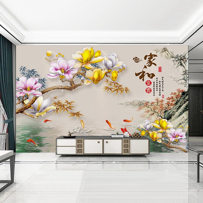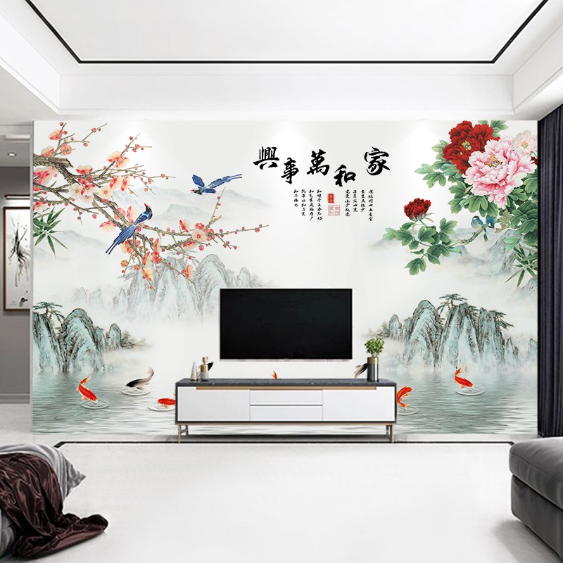 现代简约花鸟墙纸新中式墙布客厅卧室电视背景墙壁纸壁布影视壁画