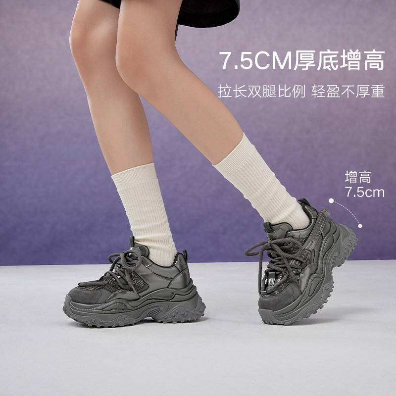 百思图2025春季新款商场同款时髦运动老爹鞋厚底女休闲鞋B8251AM5