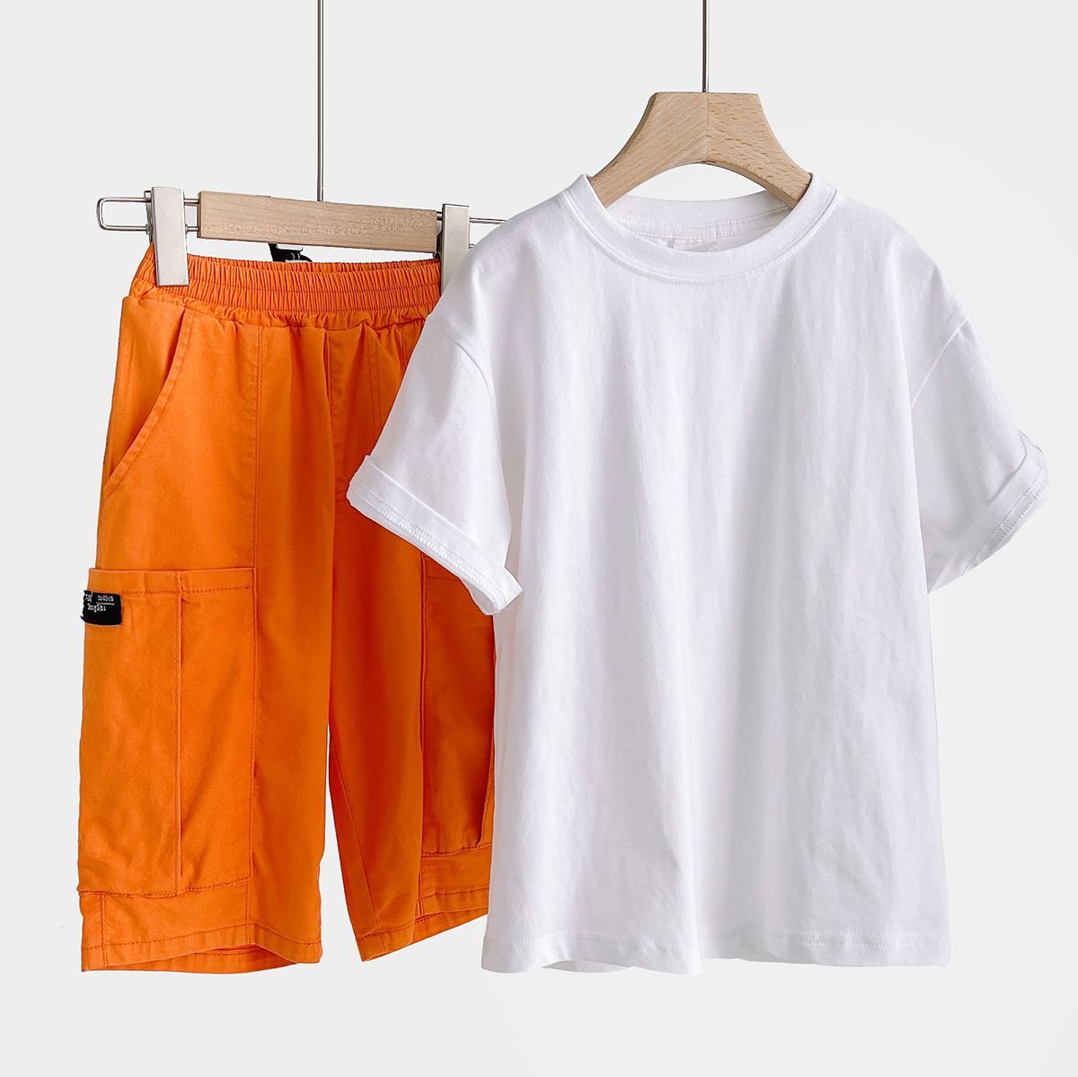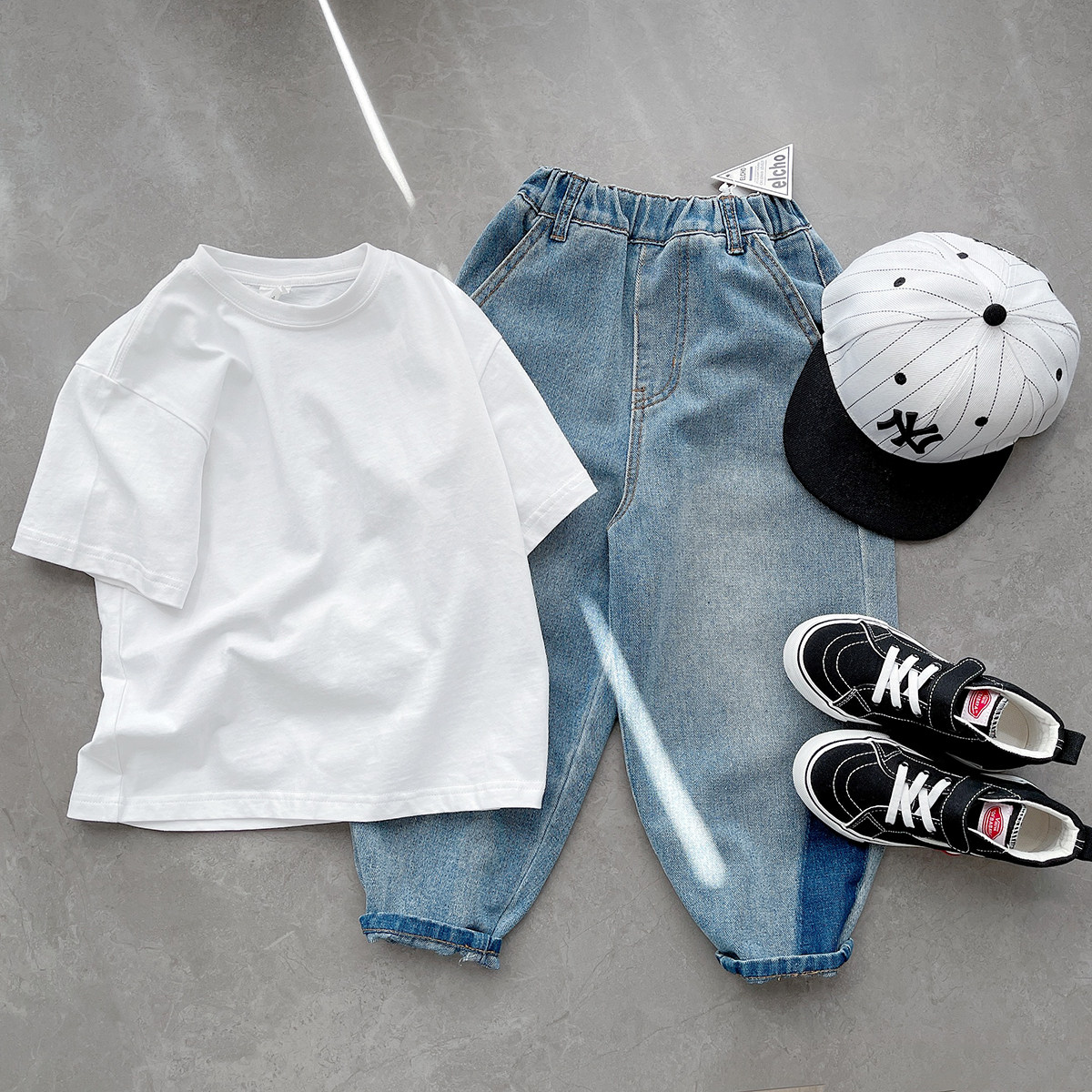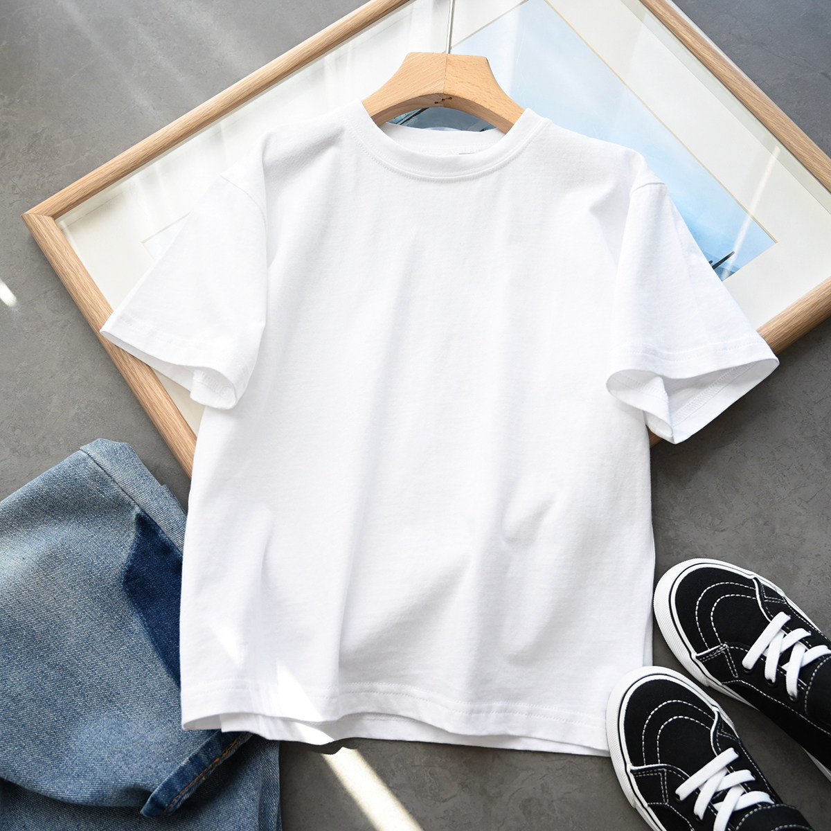 亲子款 儿童纯棉白T恤 女士男女童纯色全棉短袖 五分袖打底夏款
