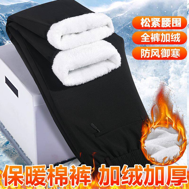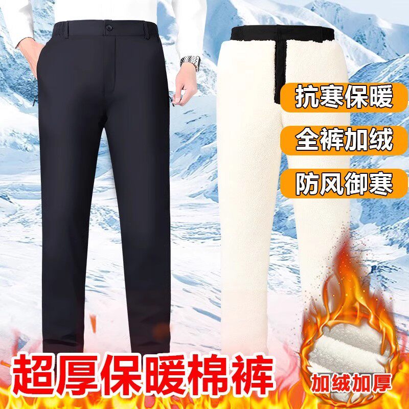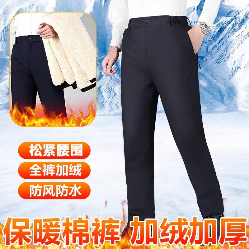 皮尔卡丹冬季加绒加厚外穿防风防水中年男士棉裤羊羔绒高腰保暖裤