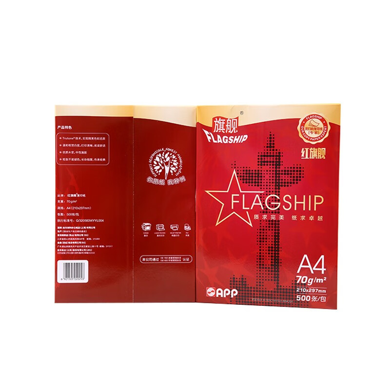 APP红旗舰70gA4复印纸高白度双A级环保FSC认证兼容HP/Canon办公批量采购学生作业用纸大包装复印纸批发直供