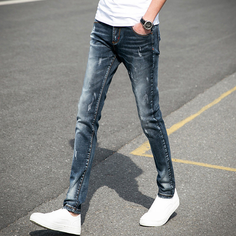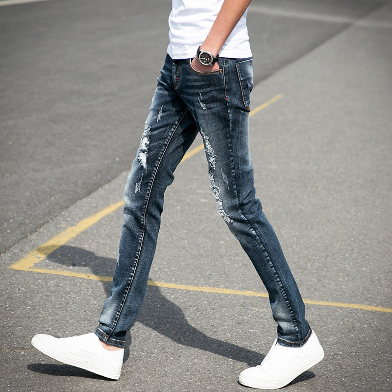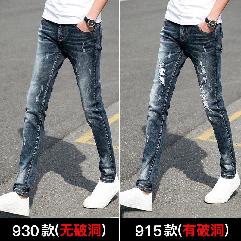 破洞牛仔裤男生潮牌修身小脚男士春季新款弹力休闲长裤子韩版潮流