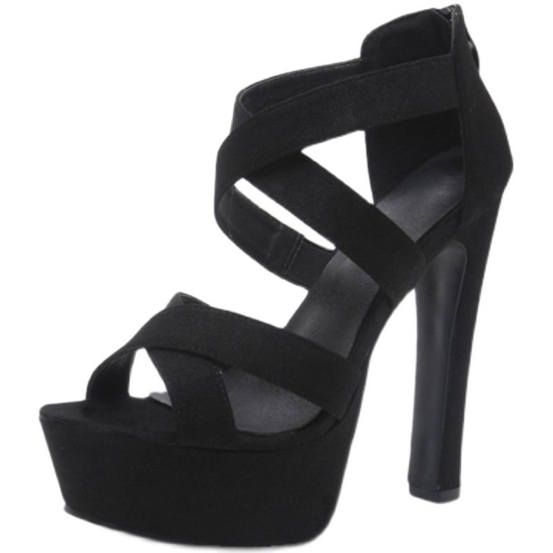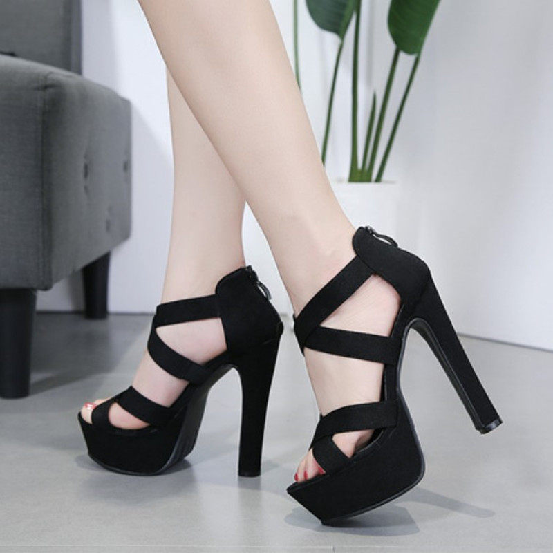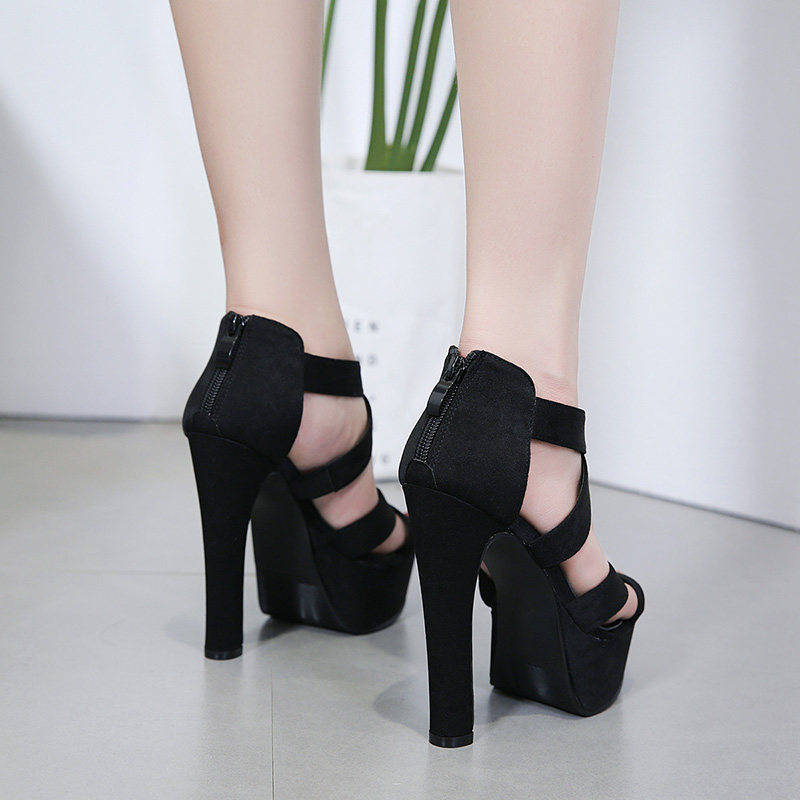 粗跟超高跟凉鞋14CM夜店性感防水台镂空交叉绑带显瘦罗马走秀女鞋