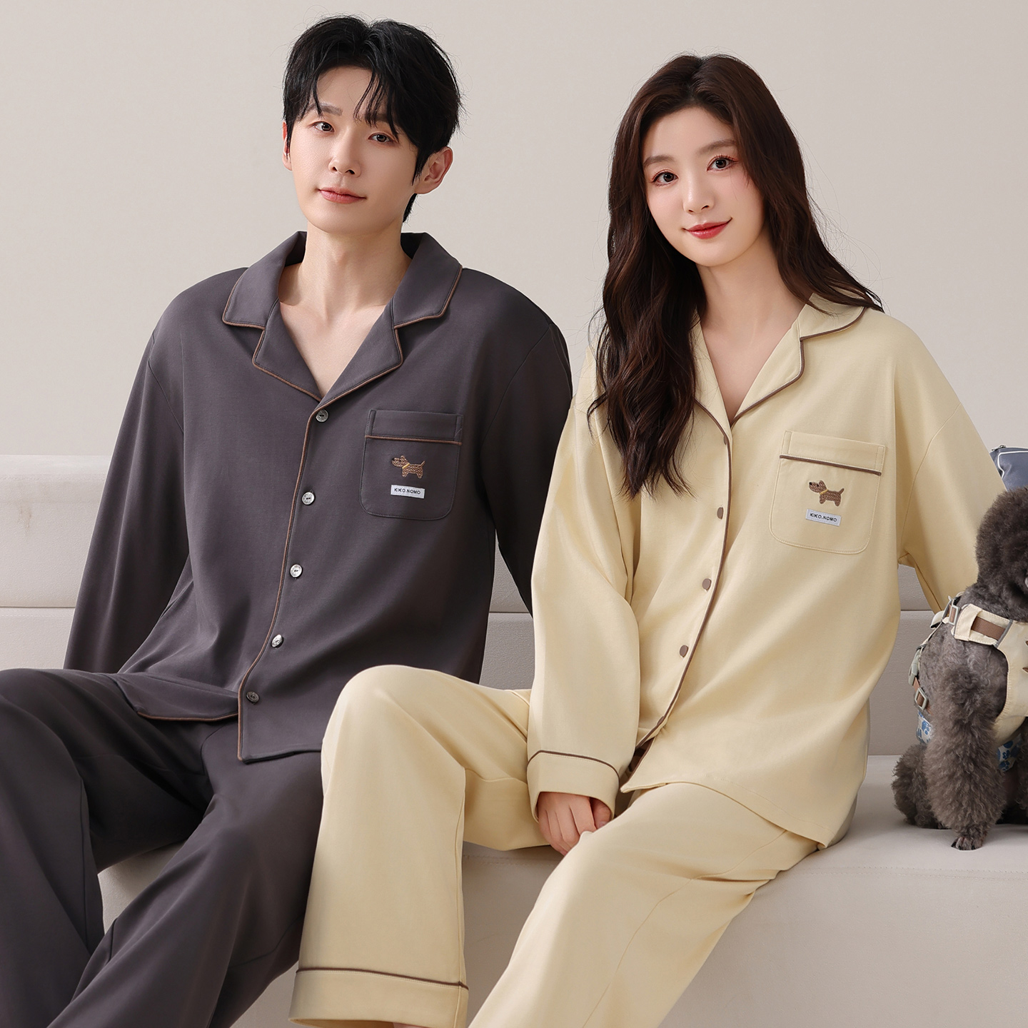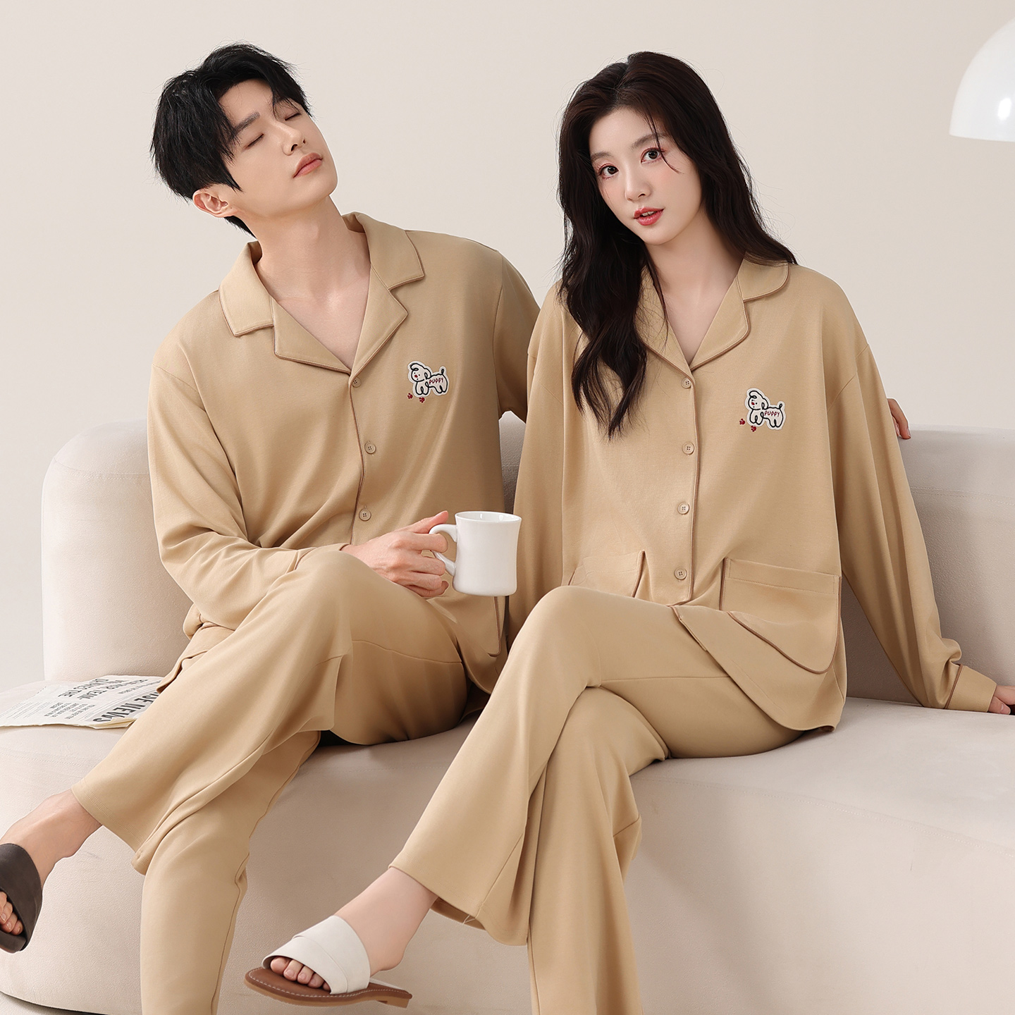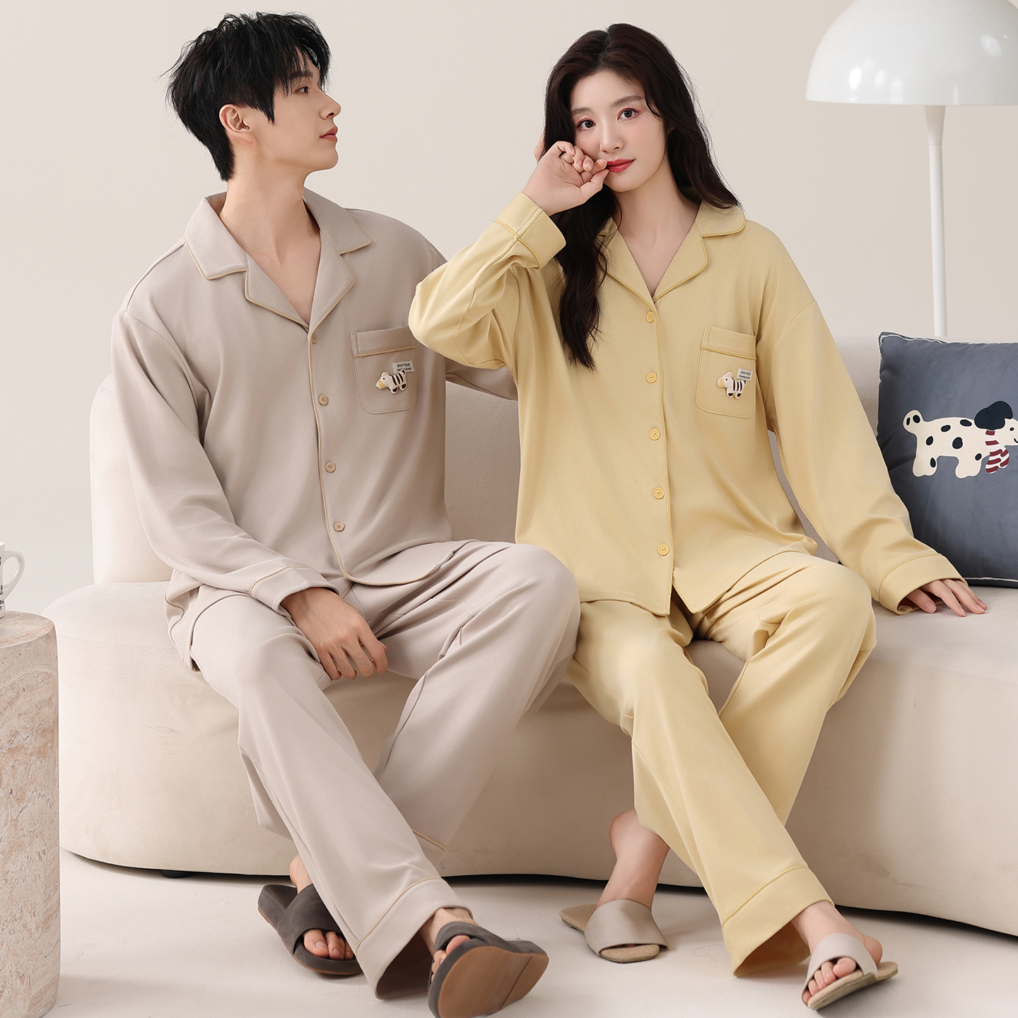 情侣装纯棉睡衣春秋款休闲套装
