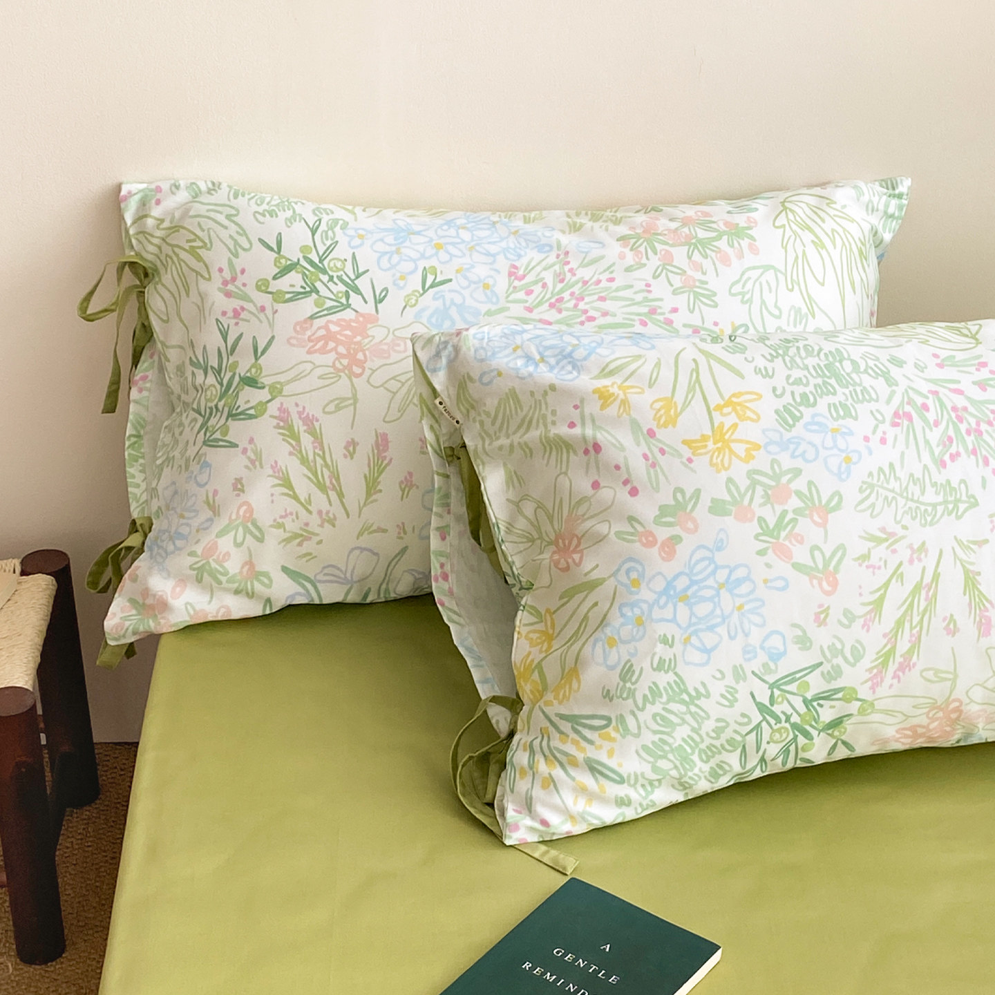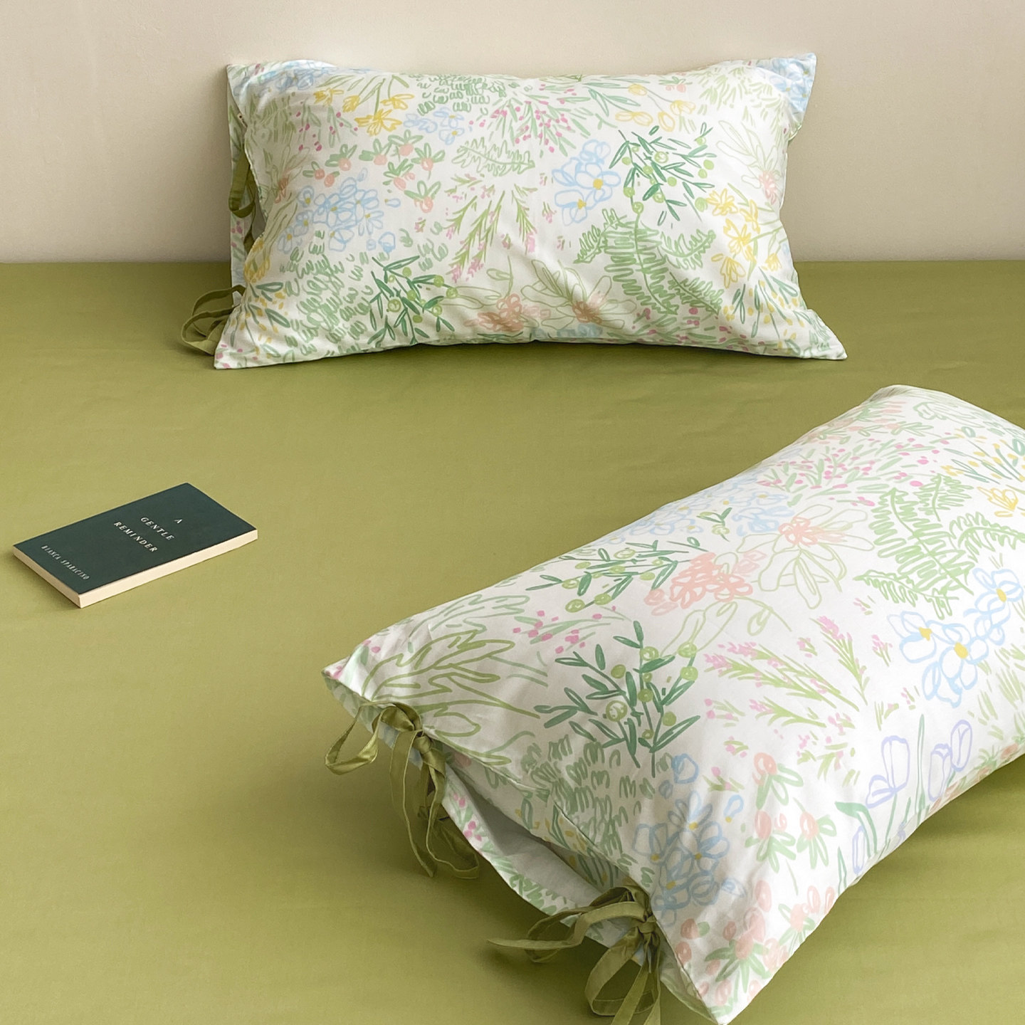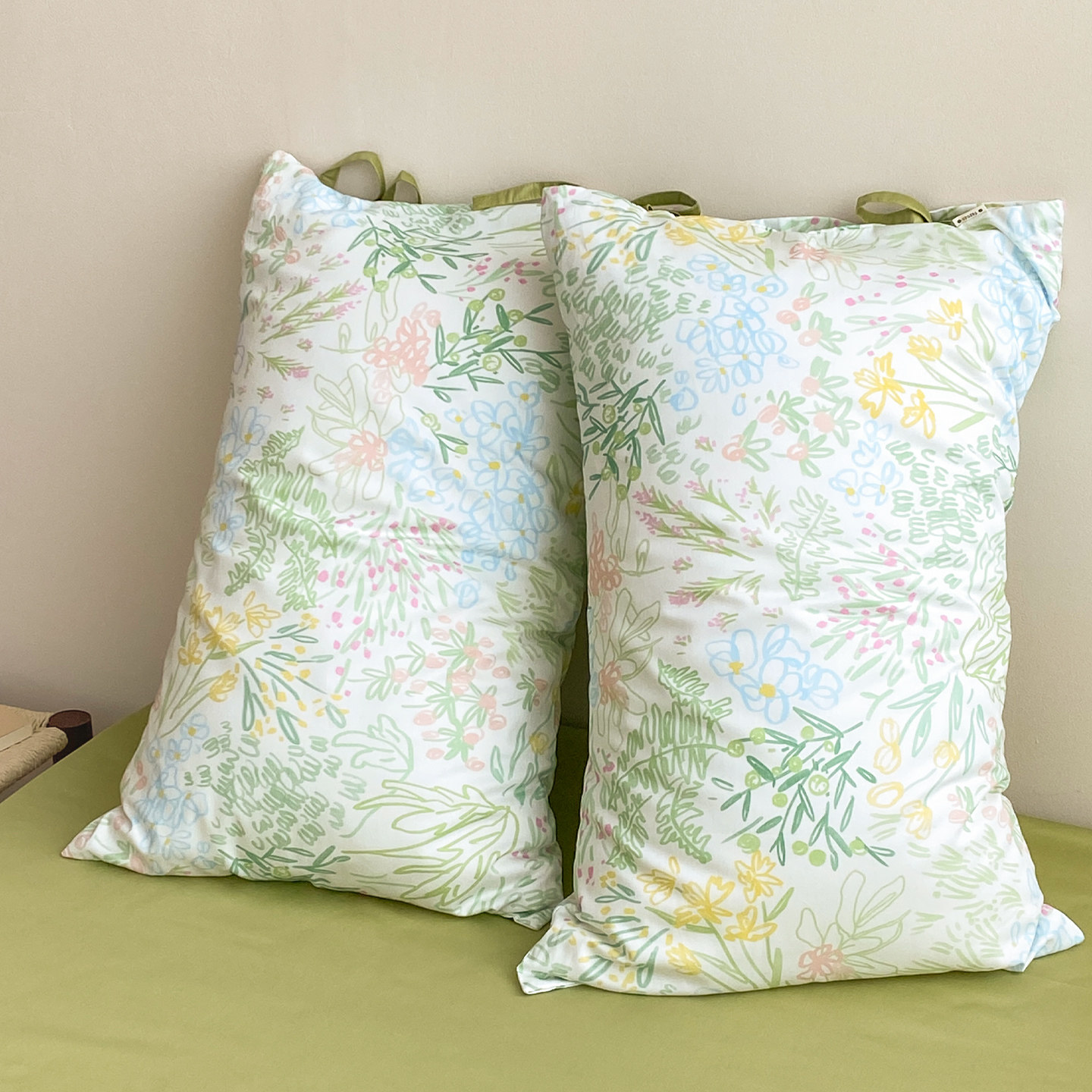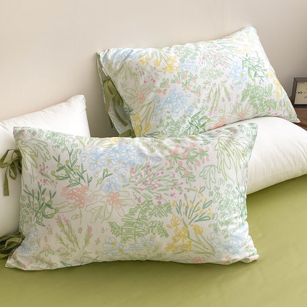 繁花也有时 森系插画60支长绒棉枕套枕芯罩100全棉氛围感春日单只
