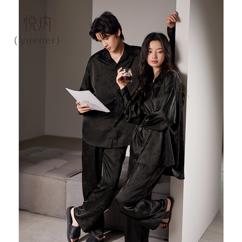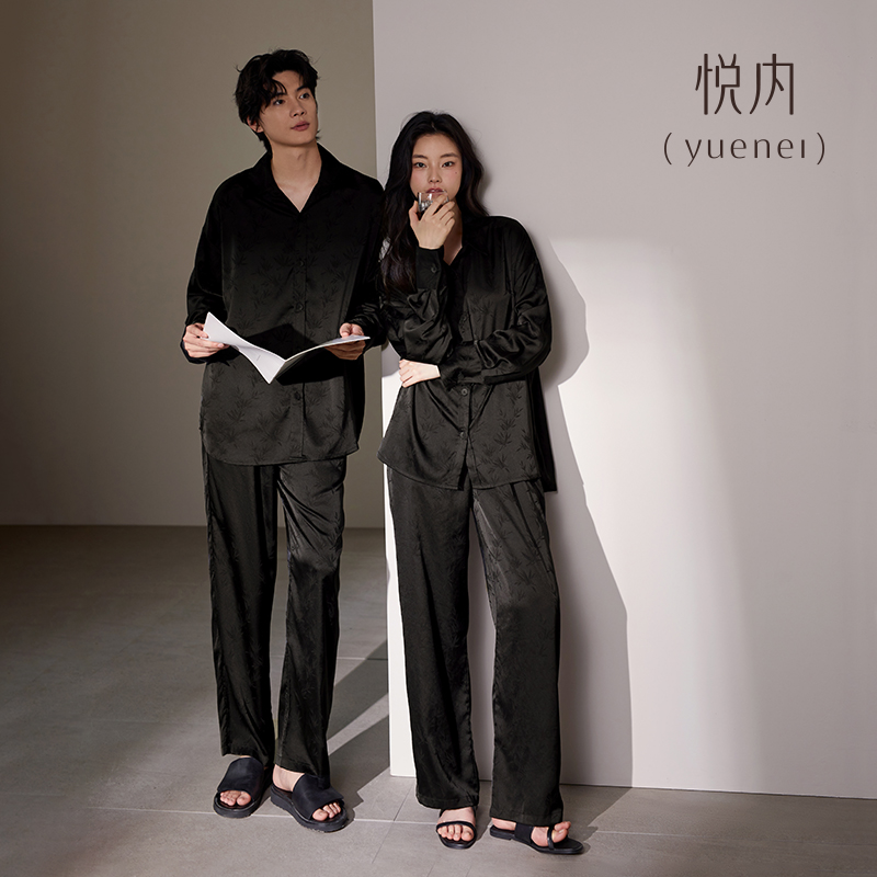悦内情侣睡衣女春秋款秋季冰丝长袖长裤家居服男士夏季丝绸高级感