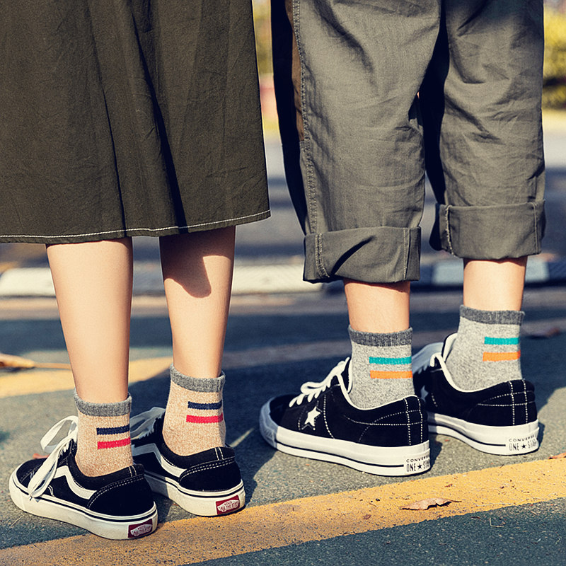 98%防臭纯棉袜子情侣袜子女ins潮流条纹春秋中筒复古秋冬男士短袜