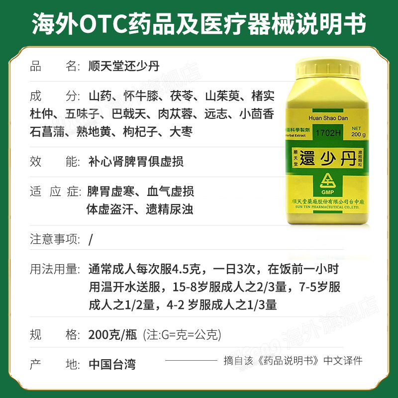 顺天堂还少丹200g脾胃虚寒血气虚损体虚盗汗遗精尿浊台湾肉苁蓉