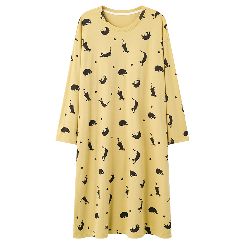 睡裙女秋天纯棉长袖可外穿大码甜美女士睡衣新款2025春秋季连衣裙