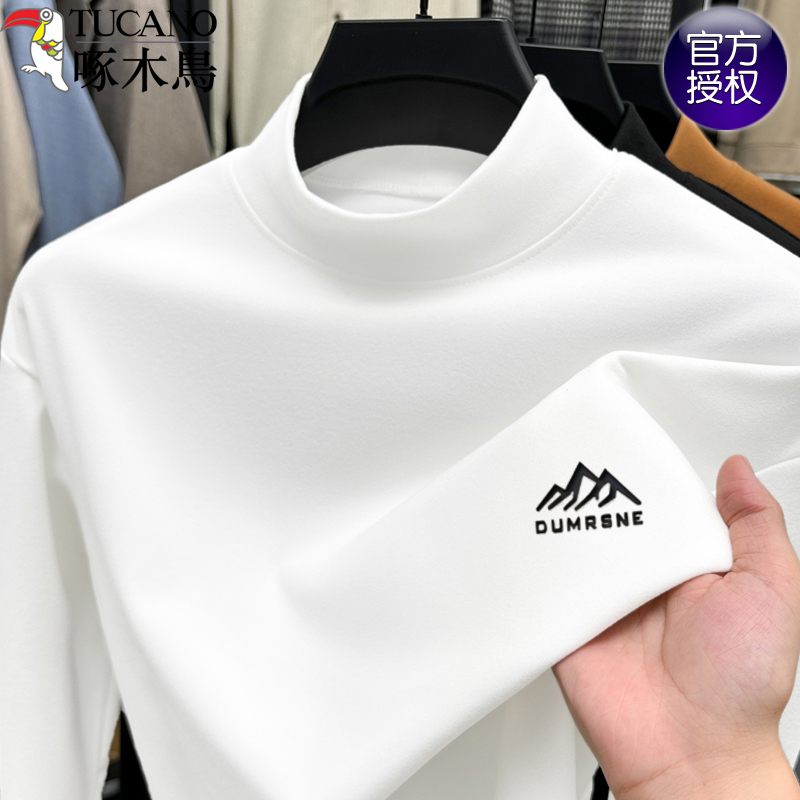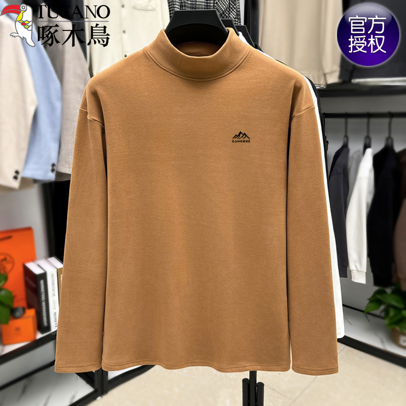 啄木鸟半高领打底衫男士纯色长袖t恤卫衣磨毛秋衣双面德绒上衣男