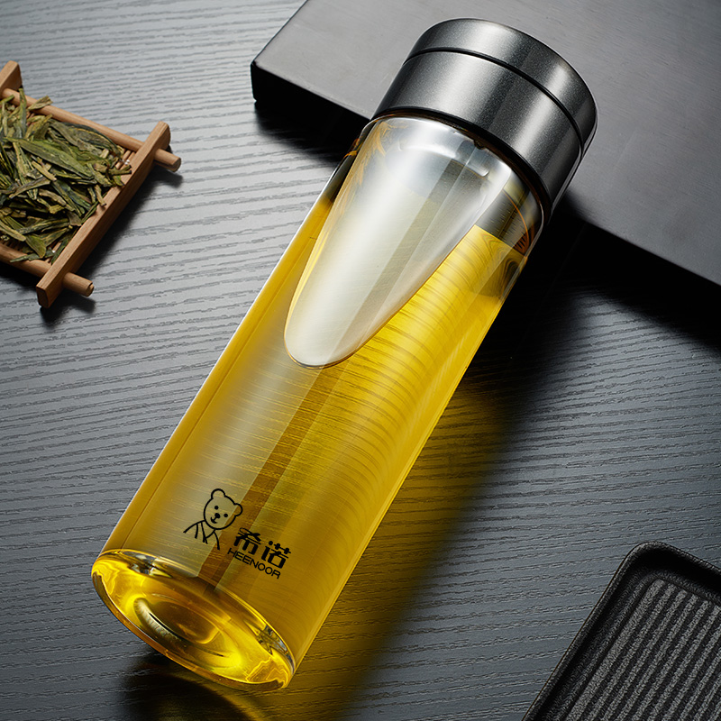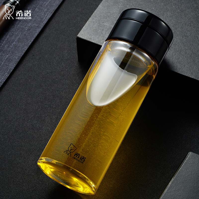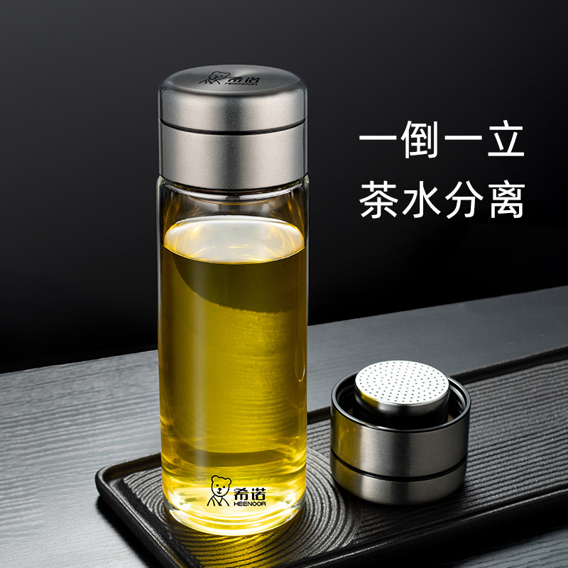 希诺单层玻璃杯男士大容量加厚茶水分离泡茶杯子高硼硅透明喝水杯
