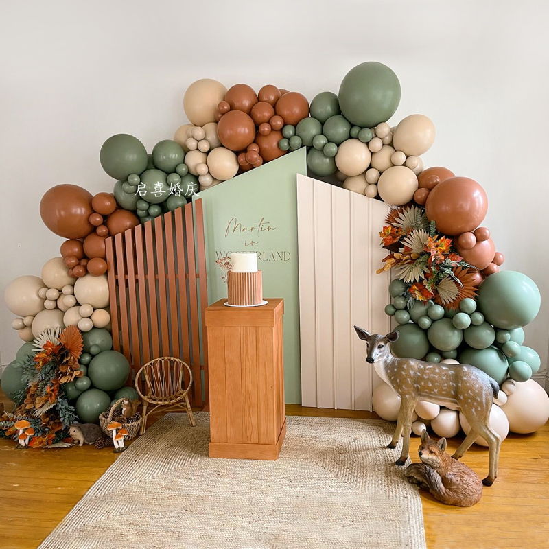 ins宝宝生日周岁百天布置棕桔色气球链套装露营派对节日装饰用品