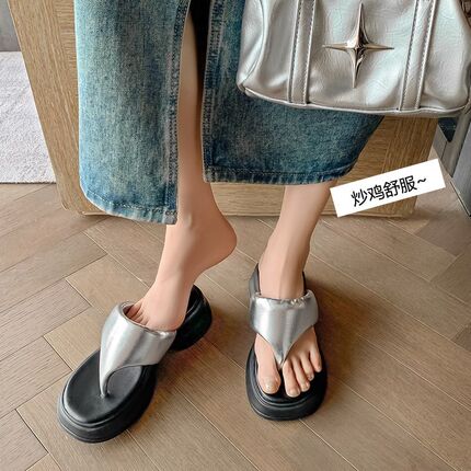 2026夏夹趾凉拖鞋女2025夏新款懒人一脚蹬沙滩人字拖休闲厚底凉鞋
