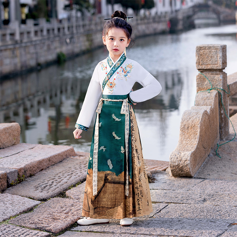 汉服儿童古装裙中国风男童薄款短袖女童马面裙小女孩唐装明制套装
