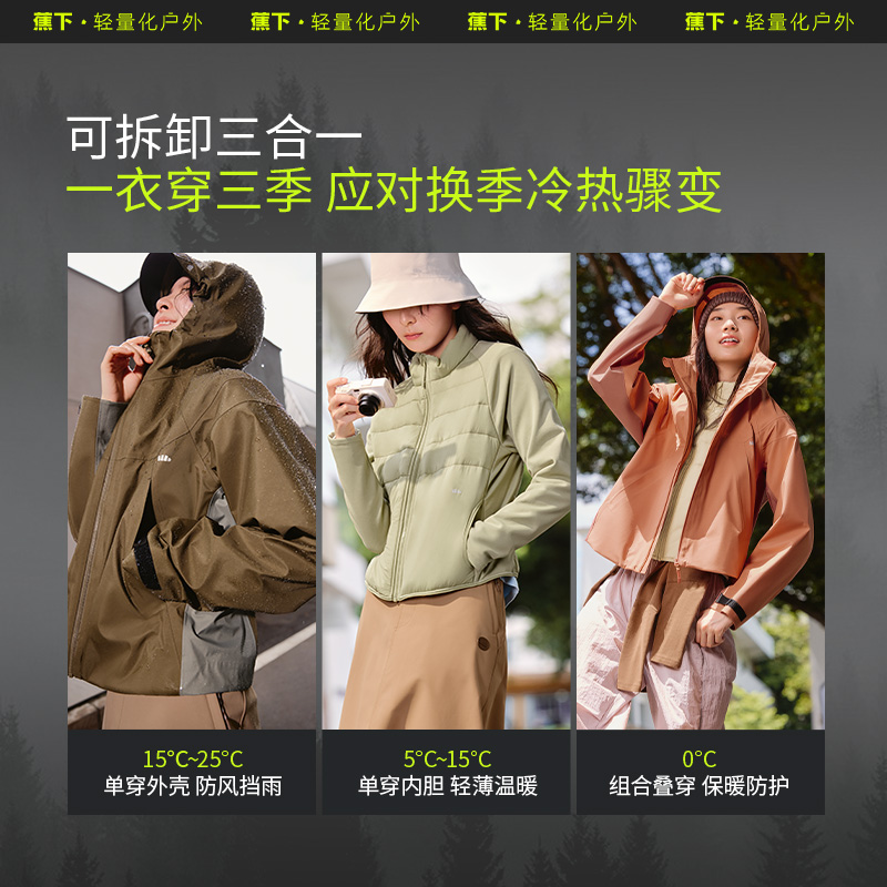 蕉下气绒冲锋衣女三合一LS19524短款户外登山服防水防风保暖外套