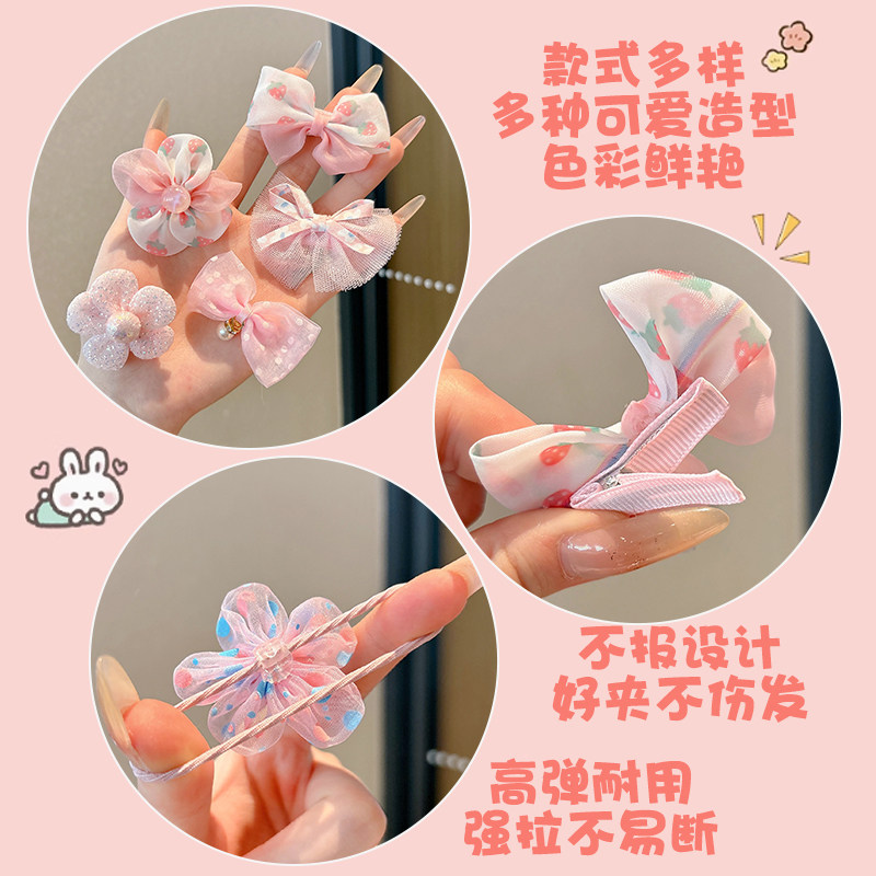 儿童粉色蝴蝶结发夹女童侧边卡通刘海bb夹子公主超仙布艺花朵发卡
