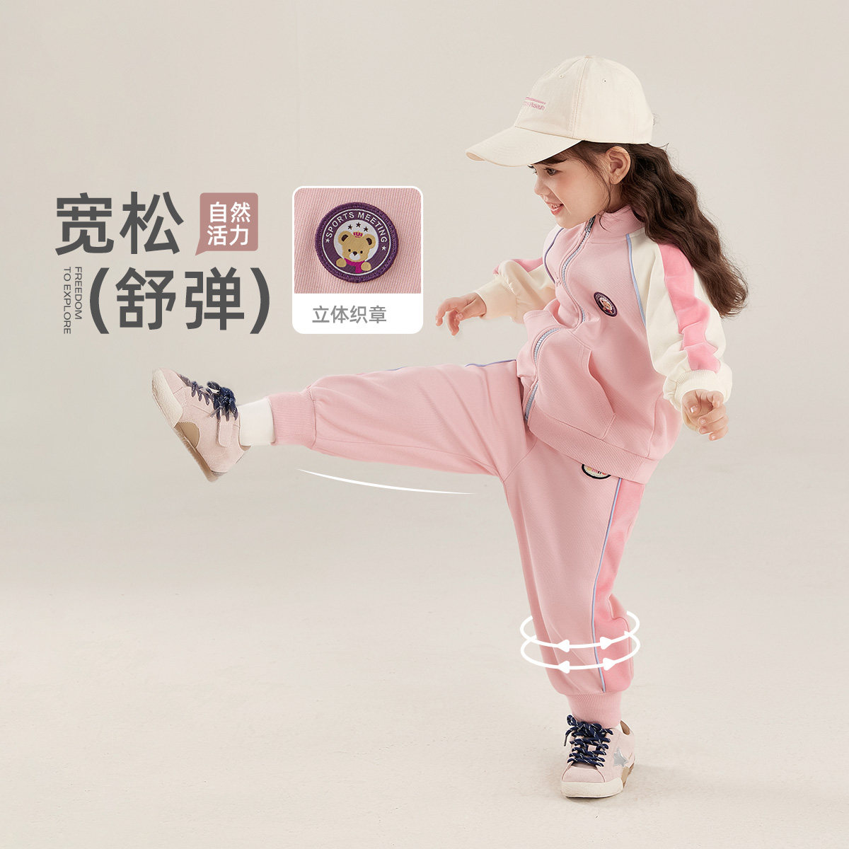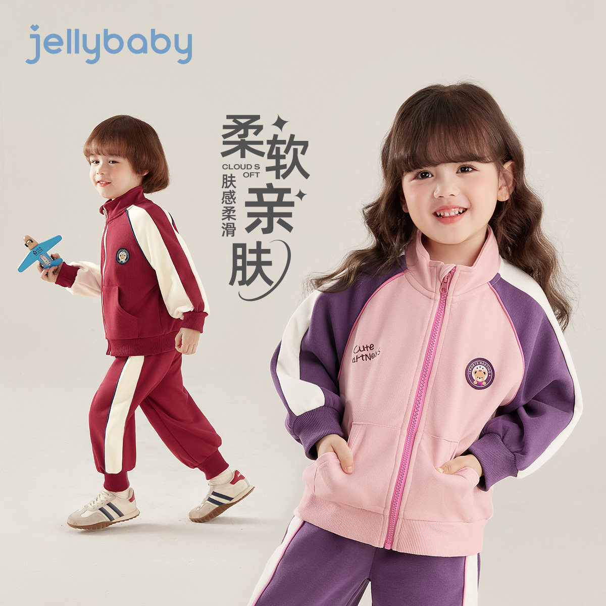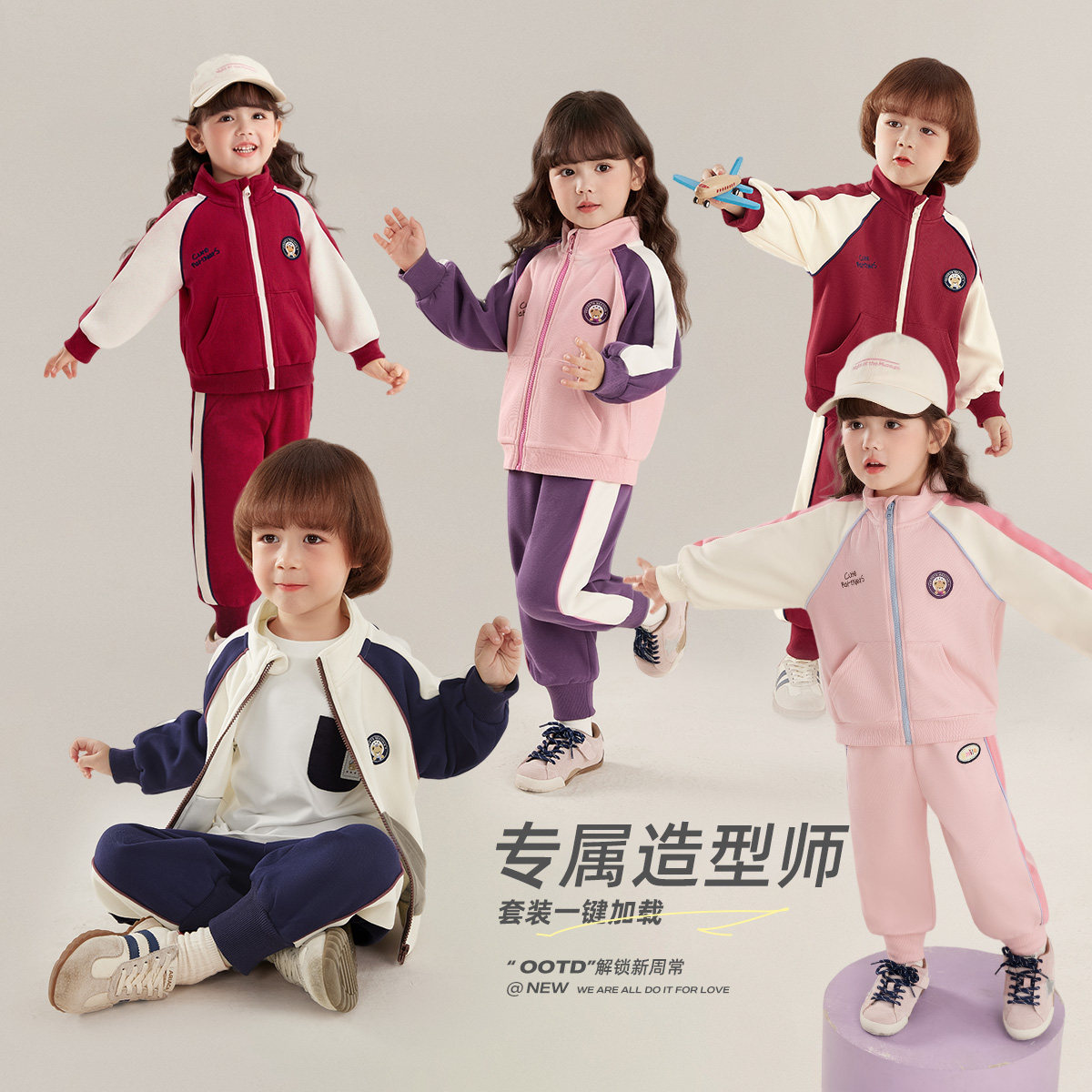[7A抑菌]女童套装男童春季撞色运动宝宝春装户外休闲春儿童两件套