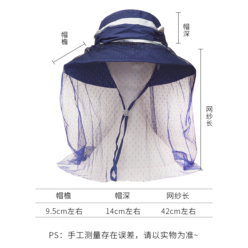 帽子女遮阳帽户外大沿防晒帽太阳帽紫外线遮脸面纱防柳絮防蚊虫帽