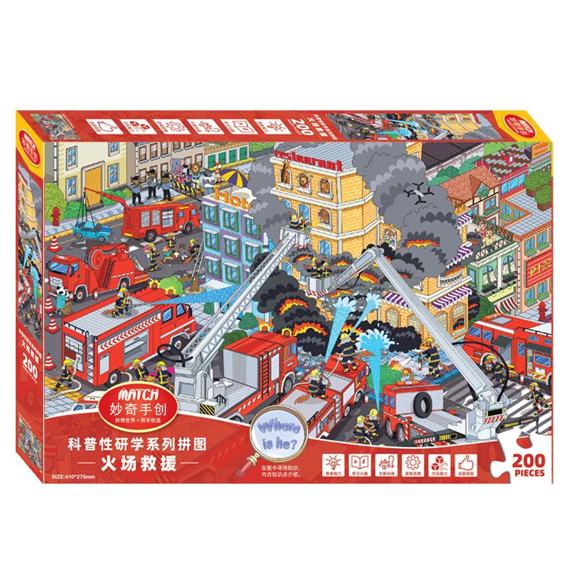 火场救援儿童拼图200片3到6岁以上男孩女孩消防知识认知益智玩具