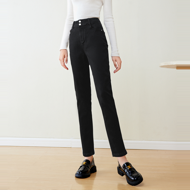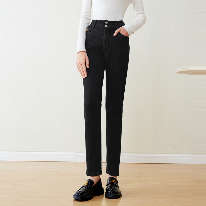 betu百图女装2024秋冬新款高腰显瘦宽松九分小脚哈伦加厚牛仔裤