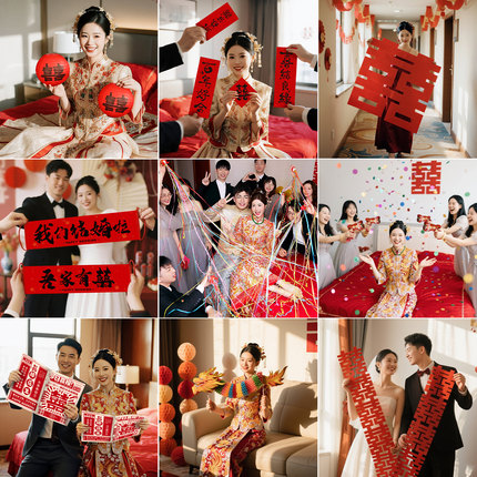 接亲晨袍伴娘拍照道具结婚礼氛围感用品大全喜字对联灯笼婚房布置