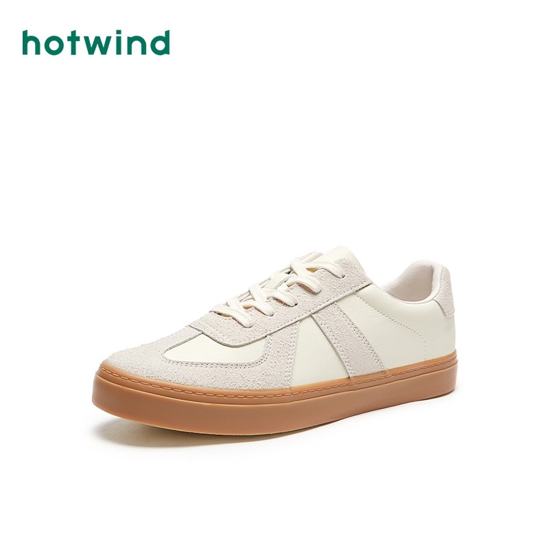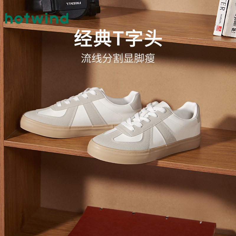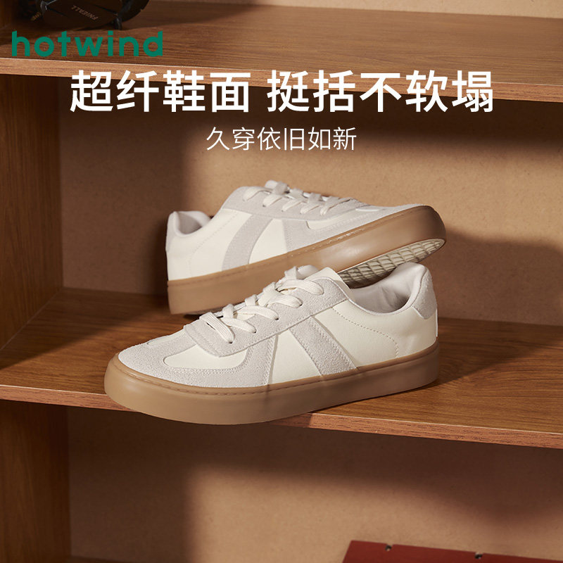 热风男鞋春秋季新款德训鞋男士时尚休闲板鞋百搭纯色小白鞋子系带