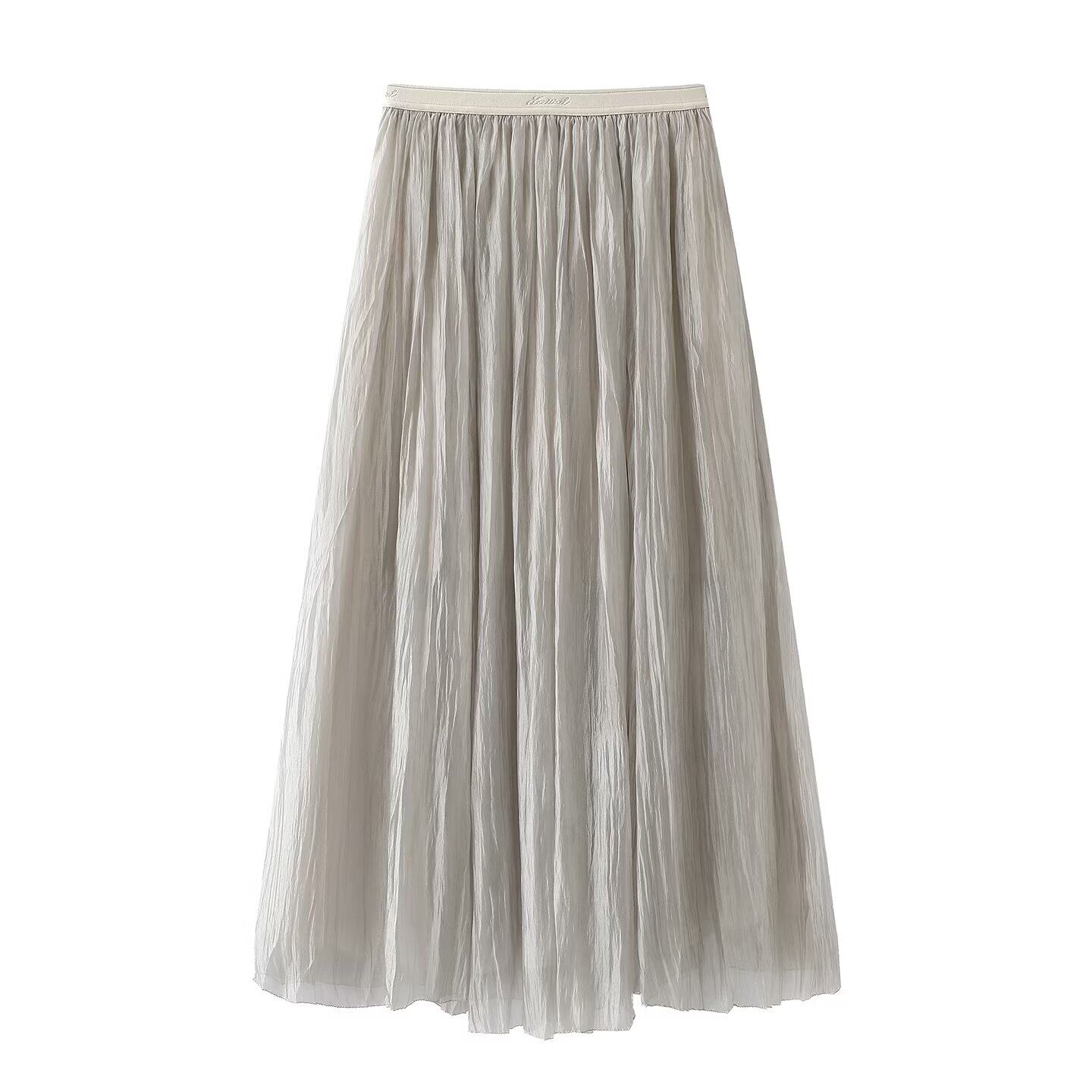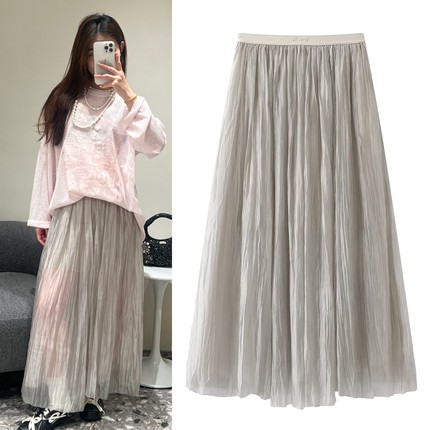 网纱半身裙2026春季新款法式浪漫褶皱肌理A字长裙子女