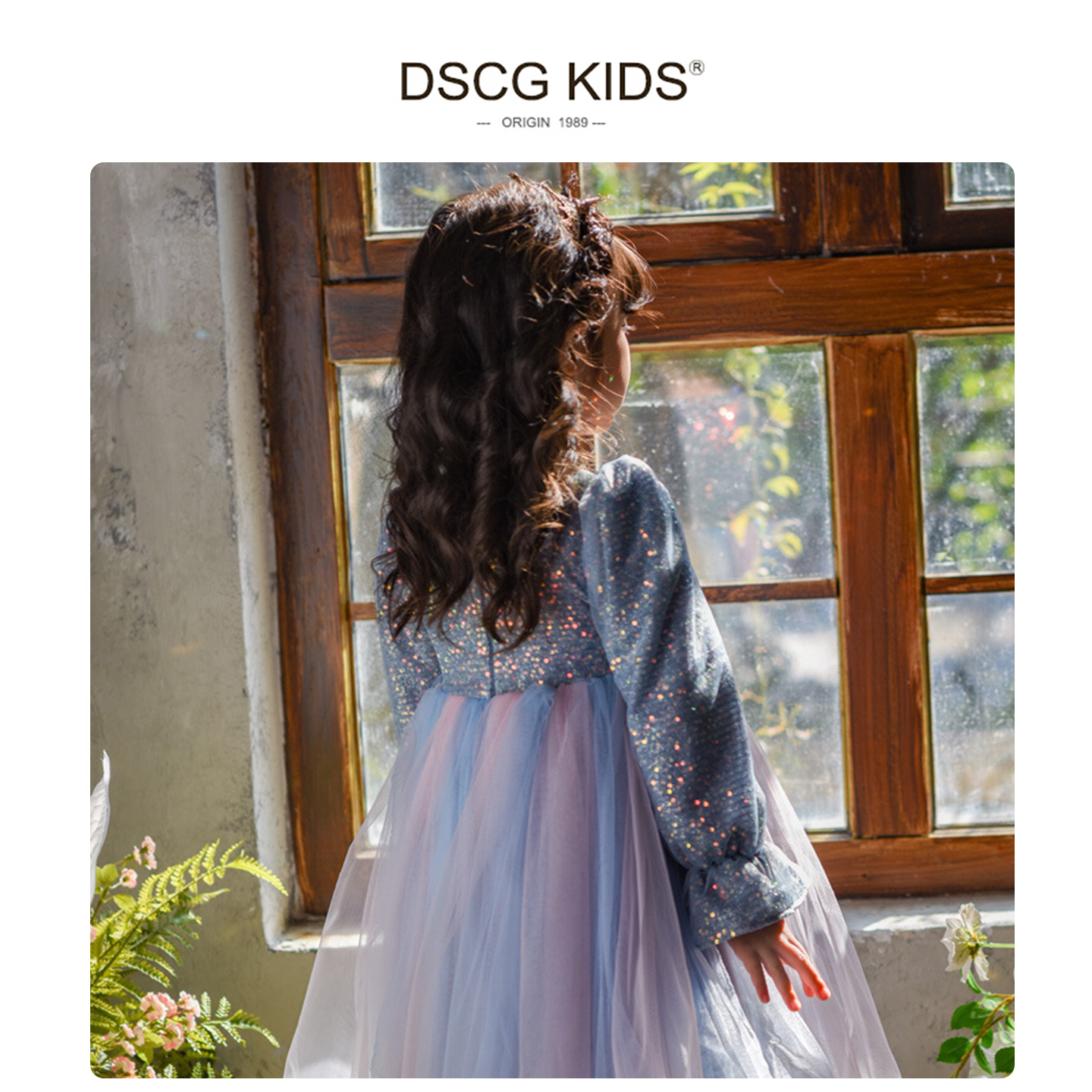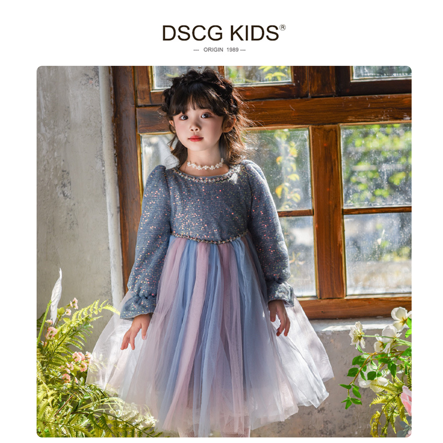 DSCG秋冬新款女童连衣裙加绒儿童蓬蓬纱生日公主裙洋气小女孩裙子