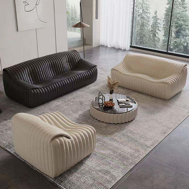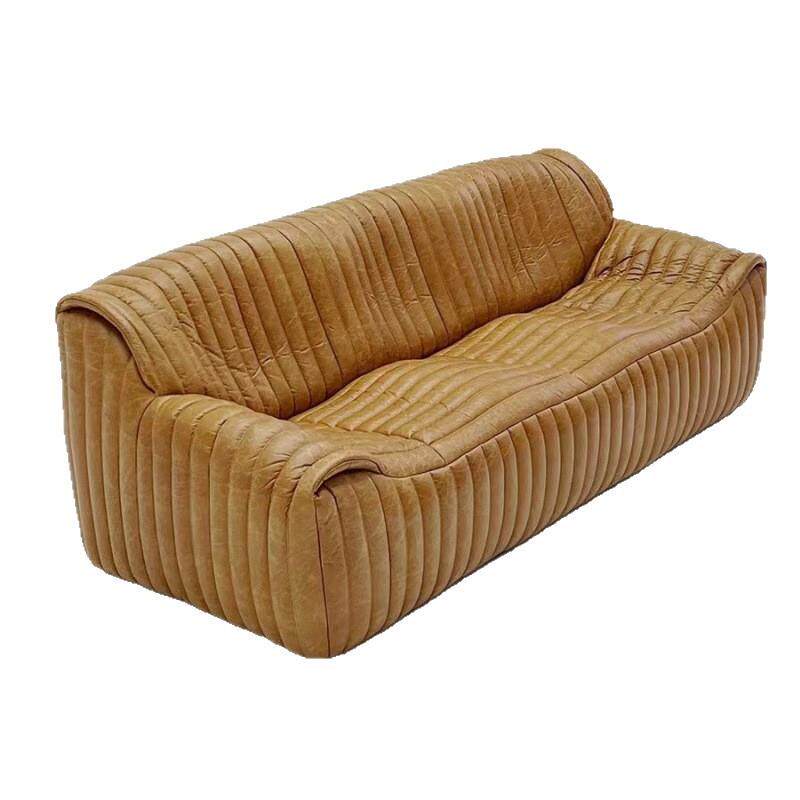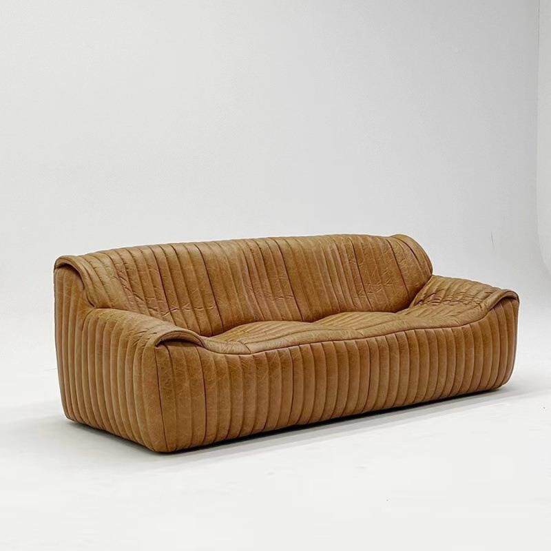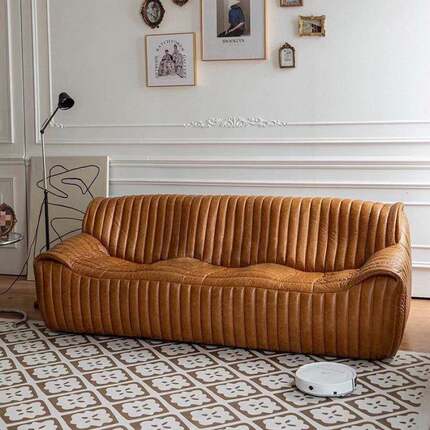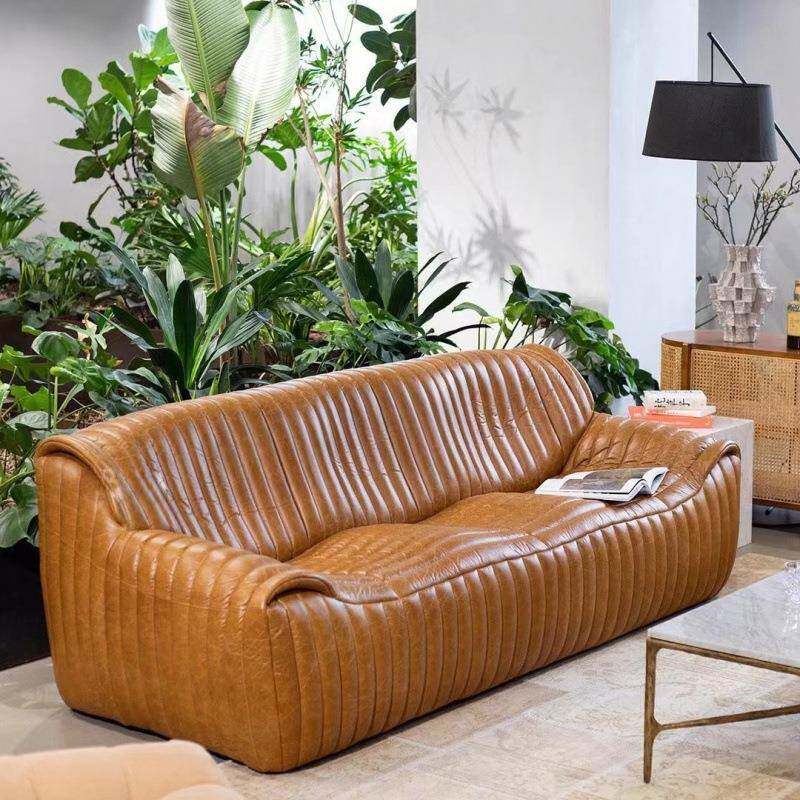 中古风皮艺浪沙发客厅现代宿设计GVS师美式古油蜡皮焦民糖复色波