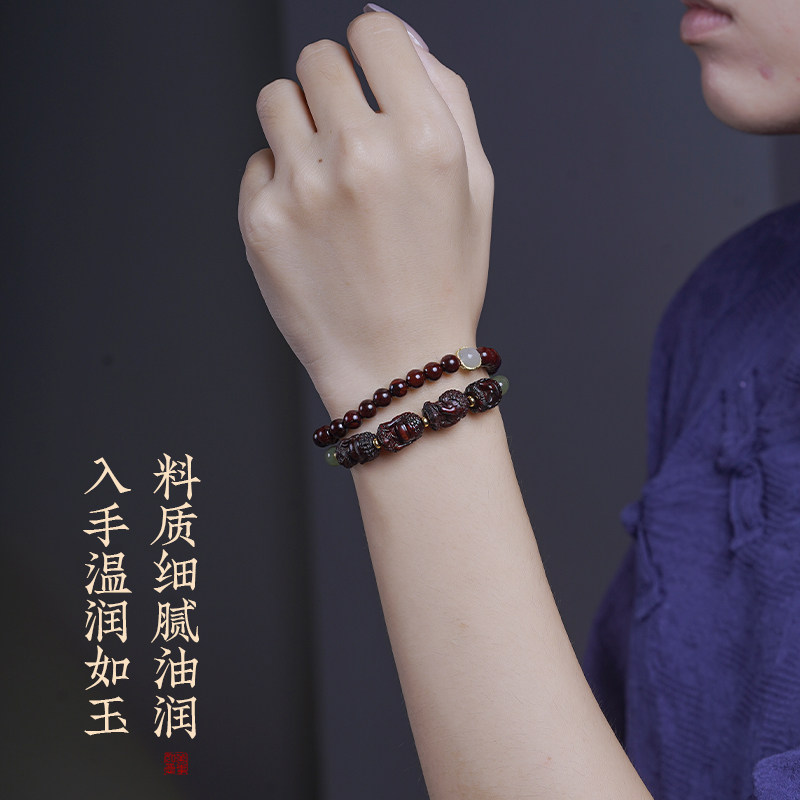 原创设计印度小叶紫檀金星双圈男高油手串檀香木质文玩佛珠女手链