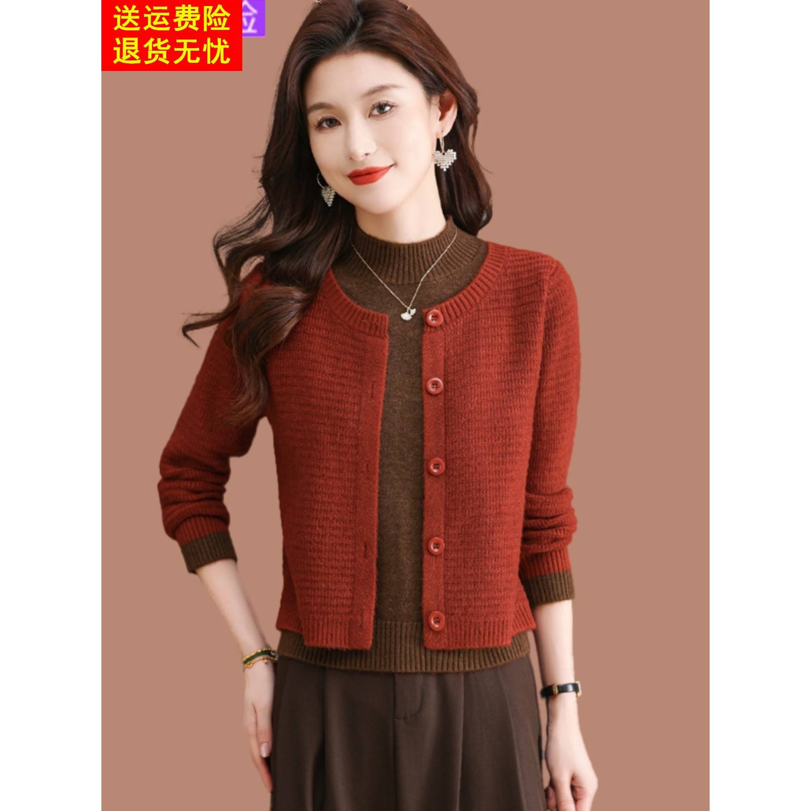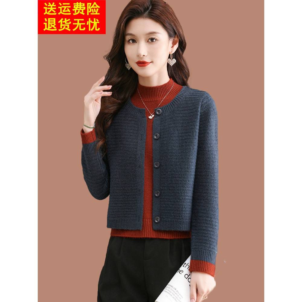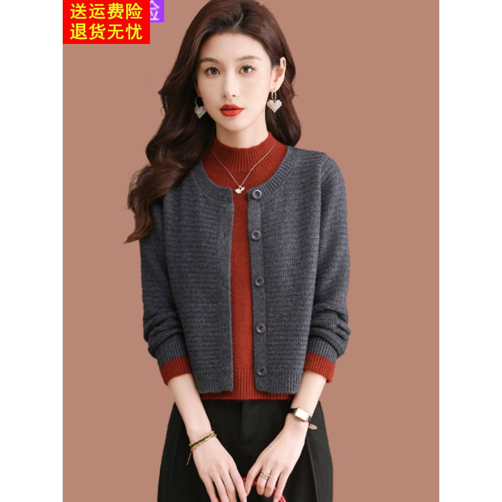 半高领假两件毛衣外套女秋冬新款时尚洋气百搭针织打底衫短款羊毛