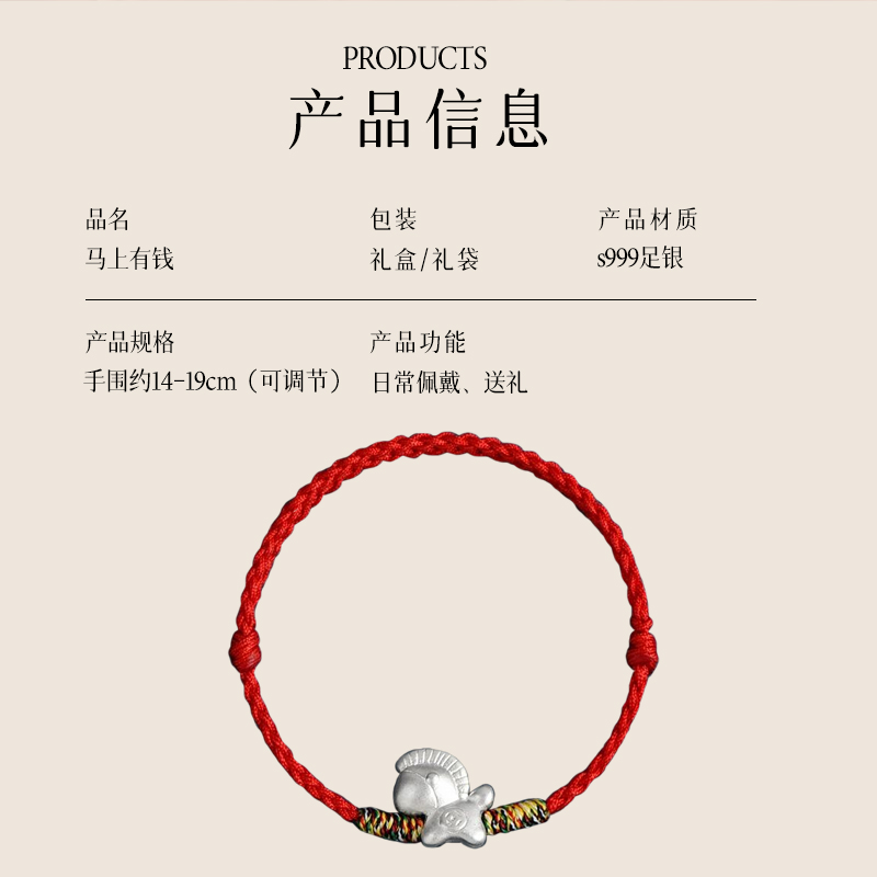 遇见普陀山马上有钱足银生肖马红绳手链男女本命年转运珠编织手绳