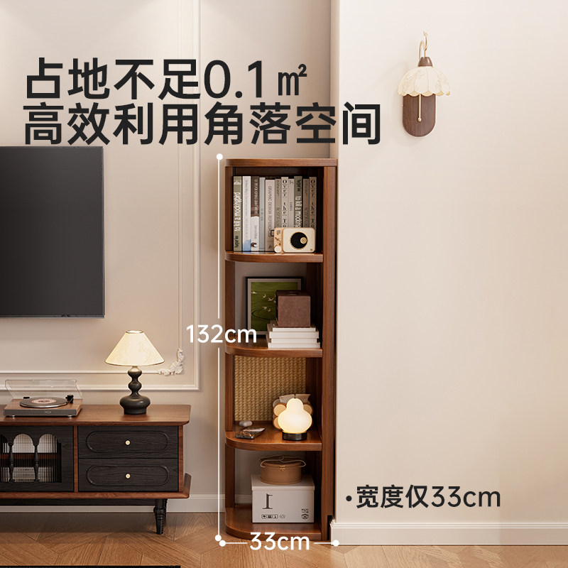 实木转角书架客厅展示柜中古风书柜落地置物架靠墙角杂志柜转角柜